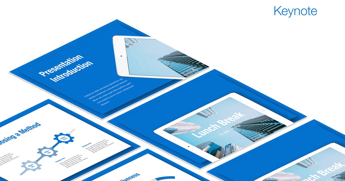 蓝色主题模板为您独特的 Keynote 幻灯片提供了专业的外观。 它包括 20 个母版和 2 个幻灯片尺寸,让您可以为您的信息选择最佳布局。 现代、精美的布局不仅仅是背景、字体和项目符号:它们包含匹配的图表、图表、表格和其他数据可视化元素。 Keynote 6.0及以后版本可以打开和编辑模板。