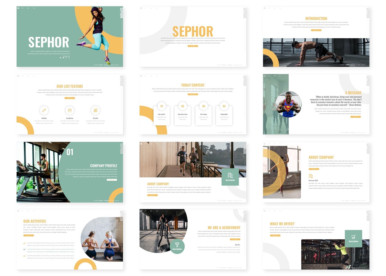 健身运动推广演示文稿PPT/GSlides/Key三合一幻灯片模板,这是一个干净简单的演示模板,包含 30 张幻灯片,其中包含由专业设计师创建的 Slidemaster 和 Devices Mockup。 30张创意和现代幻灯片; 16:9 纵横比;5 种配色方案;图片占位符,拖放图片;易于定制,完全可编辑。