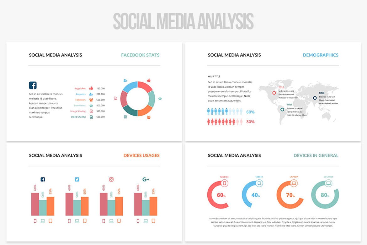 统计图表PPT模板,一个干净、优雅、简单且令人印象深刻的商业演示模板,适用于 Powerpoint 和 Keynote。100+独特的幻灯片,单独的 PowerPoint 和 Keynote 文件,16:9 幻灯片纵横比,详细的社交媒体分析,美丽的照片和项目画廊,易于编辑的图表。