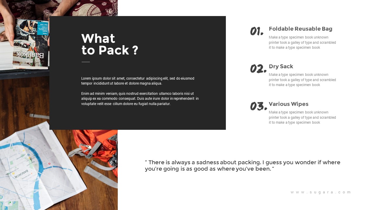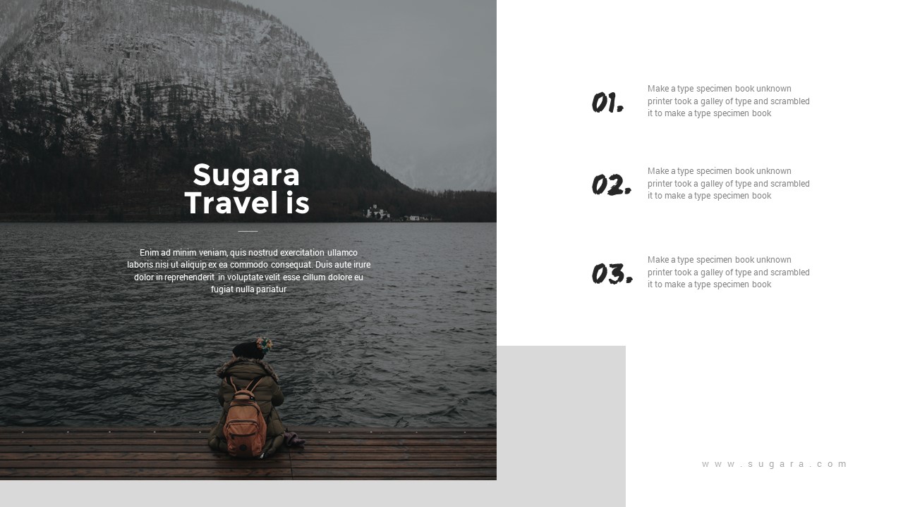 Sugara旅游指南Powerpoint演示文稿旨在帮助您如何使用审美幻灯片和简约风格设计来呈现您的旅行指南提示。为旅行者提供最好的礼物想法,以便在世界各地的目的地找到伟大的事情,并为规划他们完美的旅行提供建议。