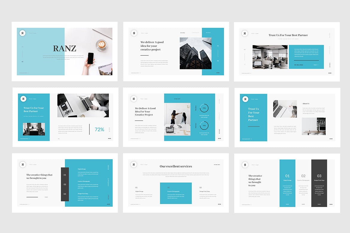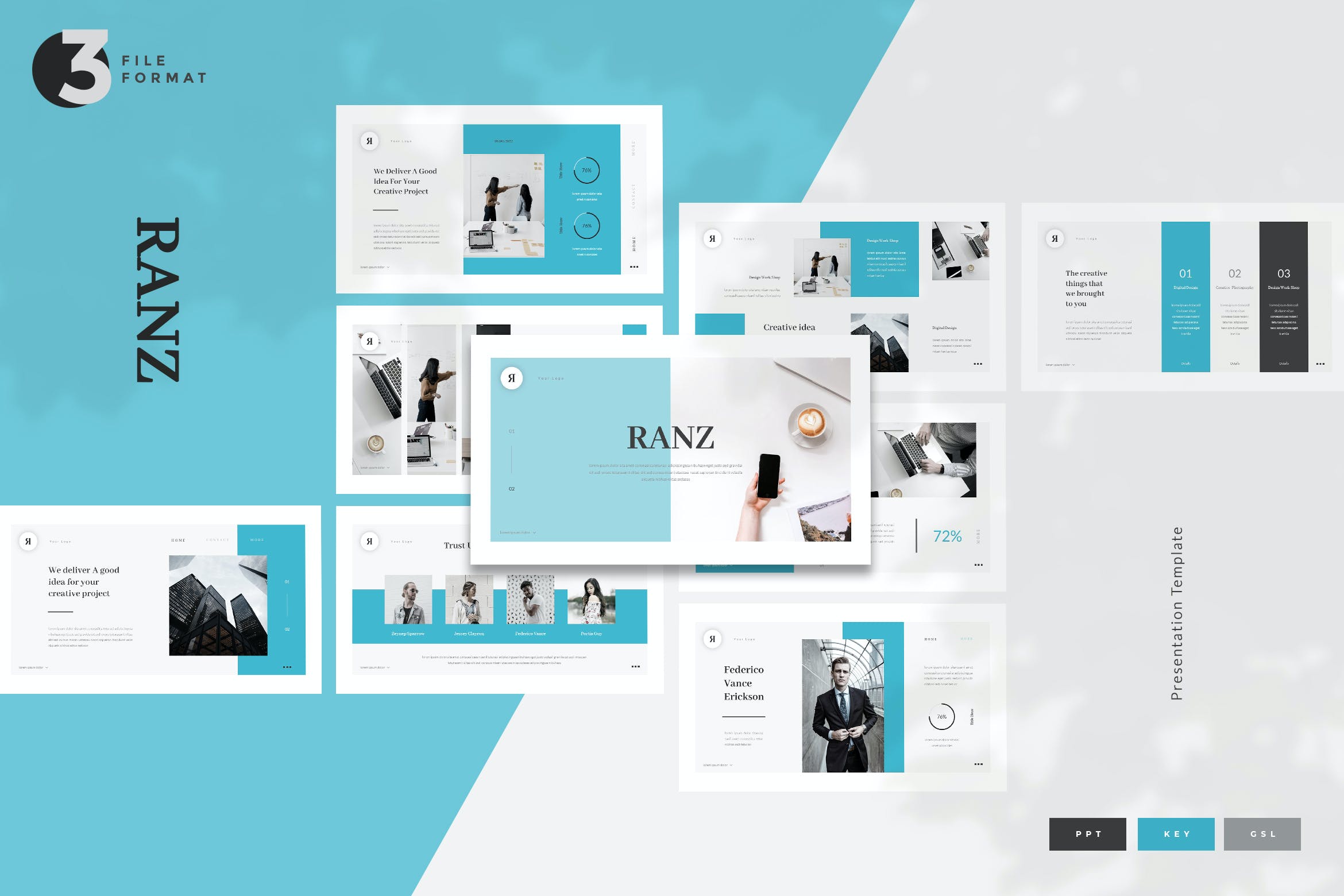 这组模板包括了3种不同的文件格式:微软的powerpoint, keynote,谷歌幻灯片。这组幻灯片也很容易编辑。