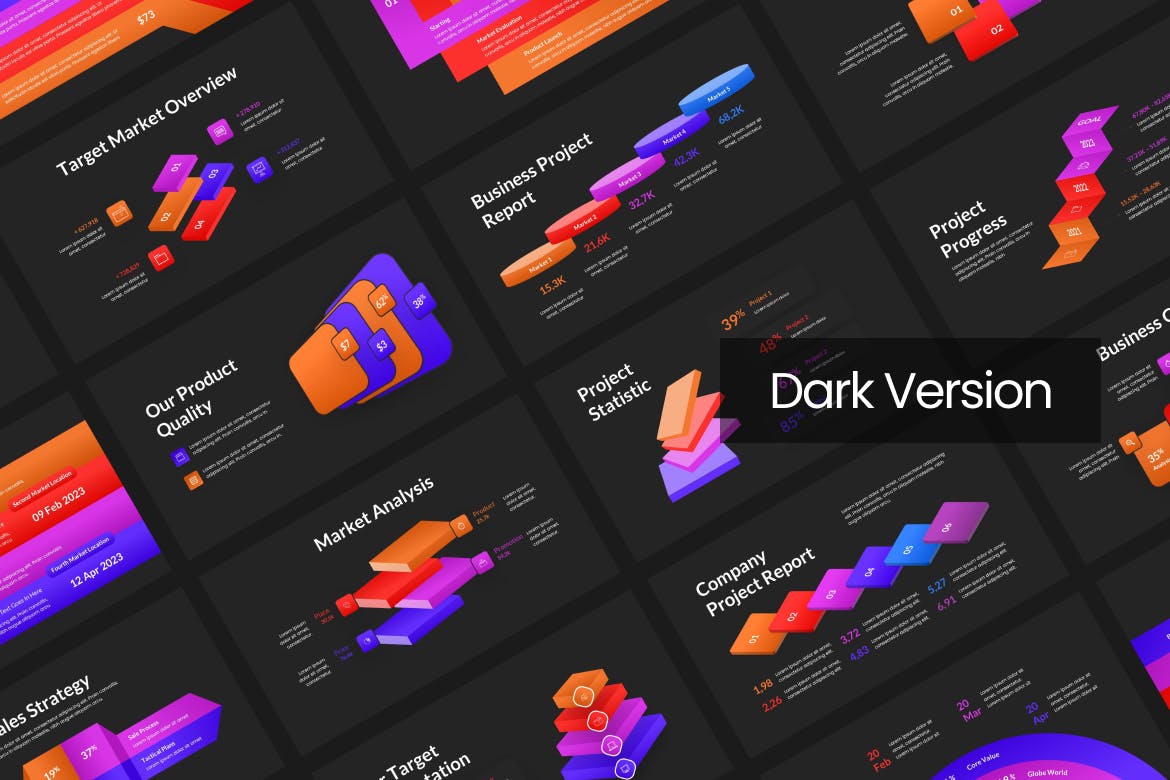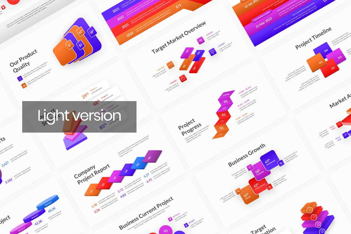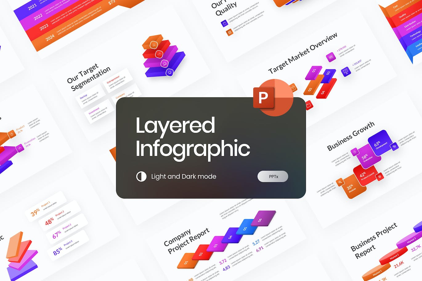 分层信息图表渐变PPT模板适用于展示复杂数据、流程或层次结构的信息。通过使用渐变颜色、图表、图像和文本布局,该模板可以帮助将信息层次清晰地传达给观众。这种视觉效果的运用可以提升信息的可视化表达和理解,使观众更容易把握和记忆重要内容。