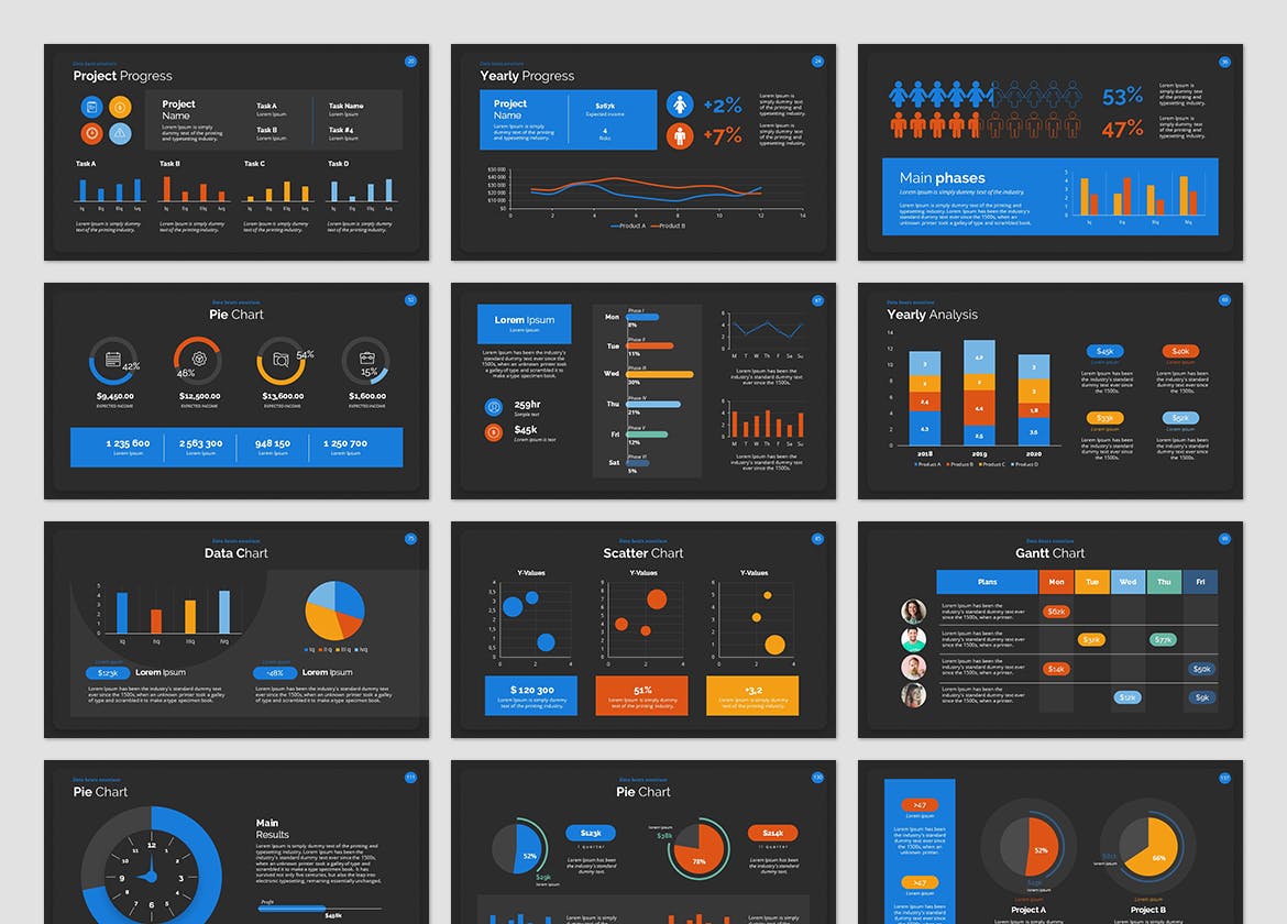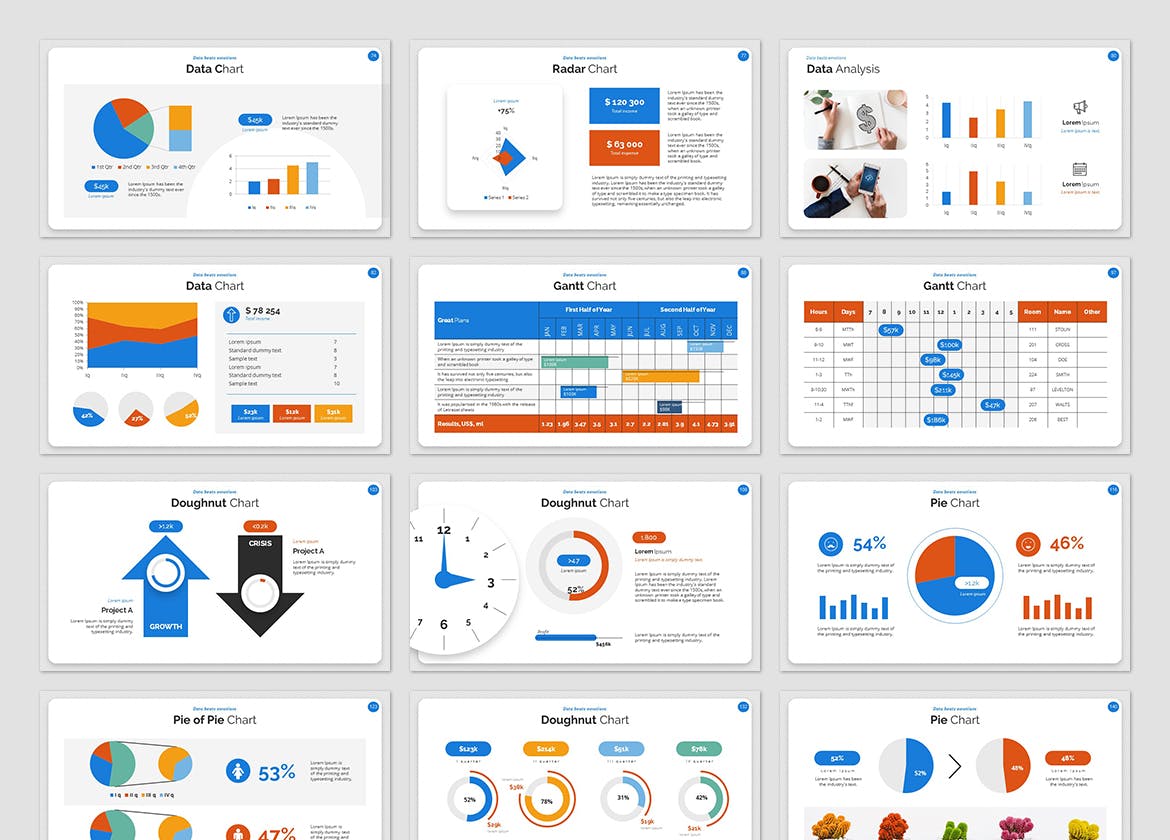 图表是处理数据的重要组成部分,因为它们是将大量数据显示为易于理解的格式的一种方式。数据统计 PPT 建议以创造性的方式对数据进行可视化,可以为第一次查看数据的人带来洞察力,也可以将发现传达给不会看到原始数据的其他人。创意风格、圆形背景和不同类型的图表!在任何类型的业务中使用它。