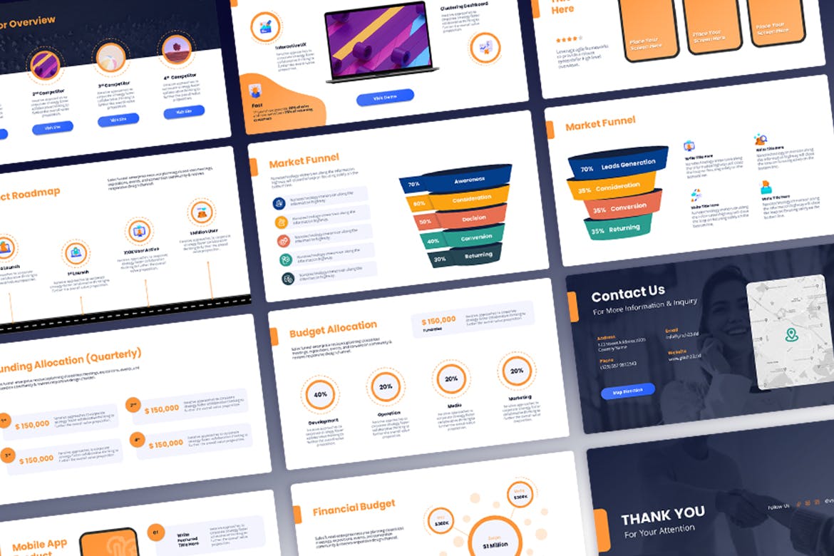 这是一个ppt模板,旨在让您的初创公司出现在 VC 面前。初创公司需要大量资金和时间才能成功,但通过正确的展示,您可以在公开发布时吸引投资者并建立受众群体。此模板包括投资者推销平台所需的一切 – 从简单的页面介绍到展示您的市场机会和财务业绩的更详细的财务报表。