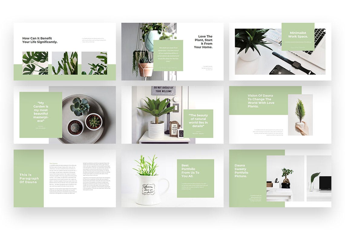 极简主义家居绿植Keynote幻灯片演示文稿模板,以时尚简约的设计使您的演示变得如此轻松,此外,以充满爱与激情的方式制作了此绿植幻灯片模板。享受和快乐的设计。