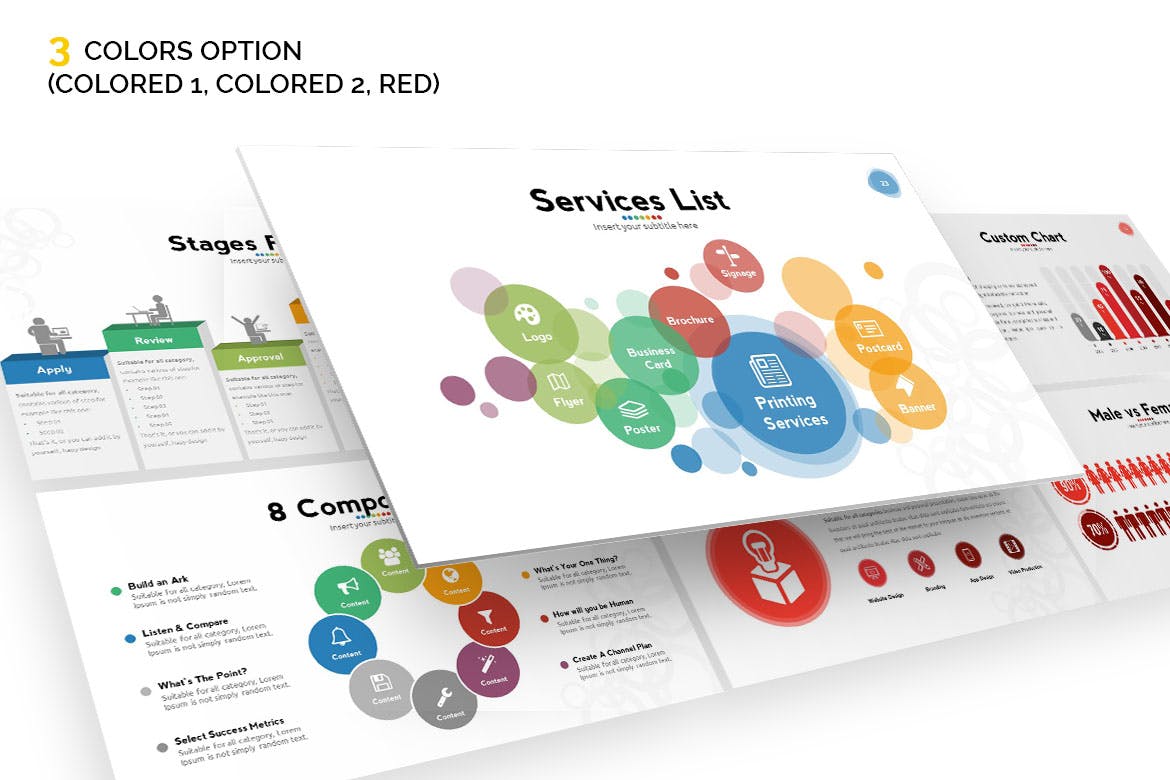 多彩流程图表Keynote幻灯片演示模板,以一个圆圈为主题,供您的演示业务或个人使用,例如创意产业,技术,金融,IT,网络,环境等。有100个独特的自定义幻灯片,其中包括手工制作的信息图,图表,流程图,流程图,思维导图,时间轴,SWOT分析,作品集,图库,地图,一般信息,以及对您的演示有用的其他内容。所有元素从形状到颜色都是可编辑的,不需要其他软件来编辑,所有演示都包括动画幻灯片和过渡效果。