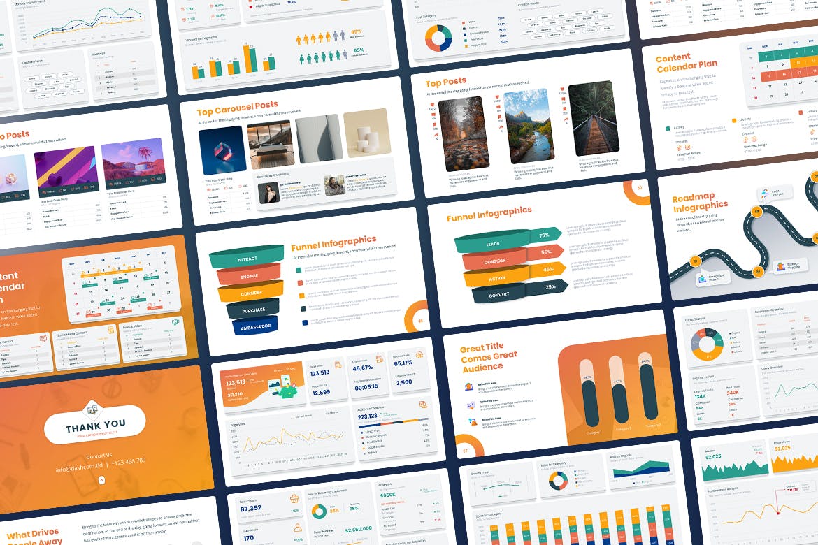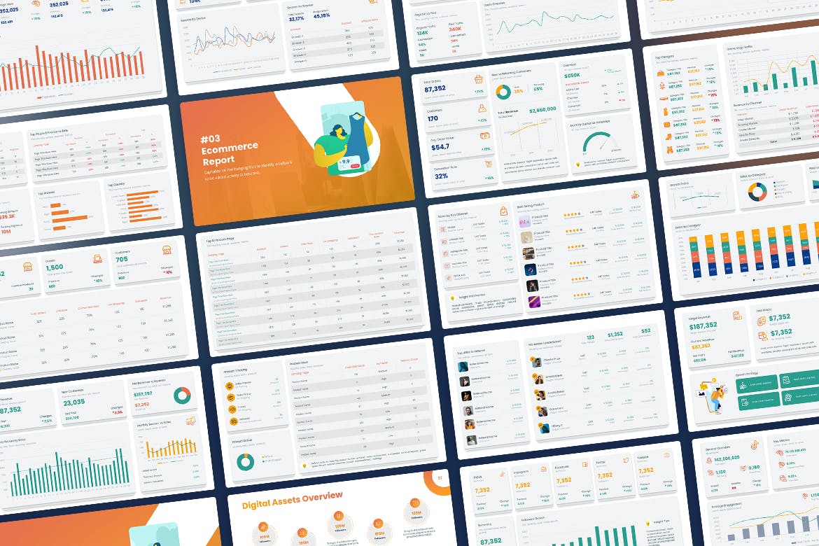 这是一组用于洞察力、社交媒体、电子商务和网站分析的仪表板模板。使用这些随时可用的预配置仪表板设计可立即创建富有洞察力的可视化效果和执行摘要。