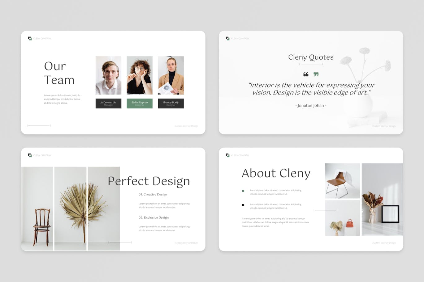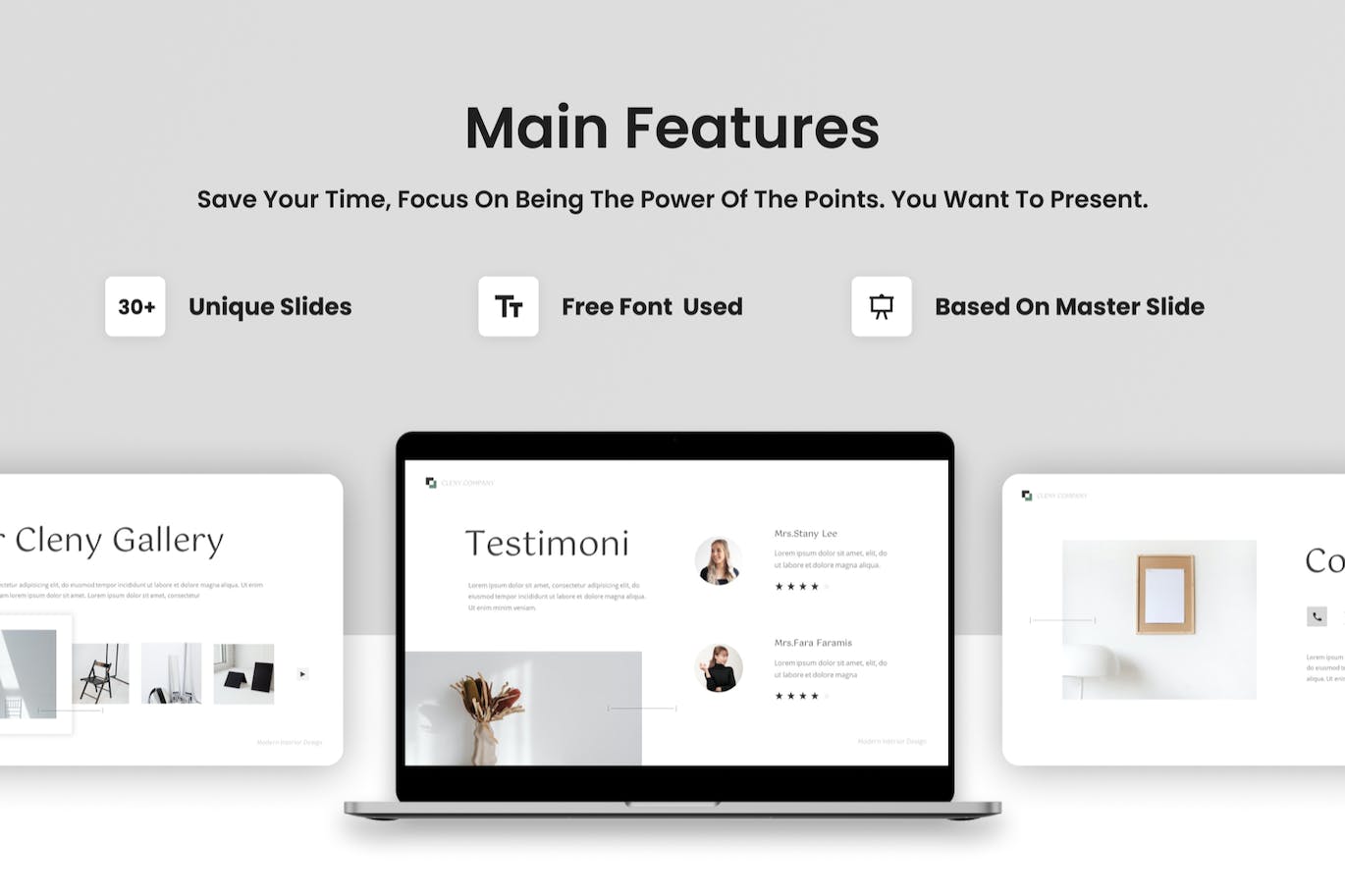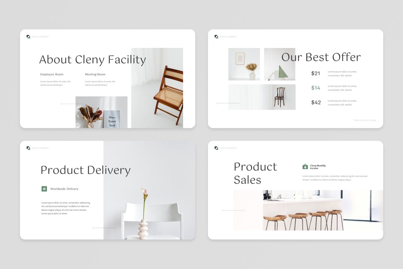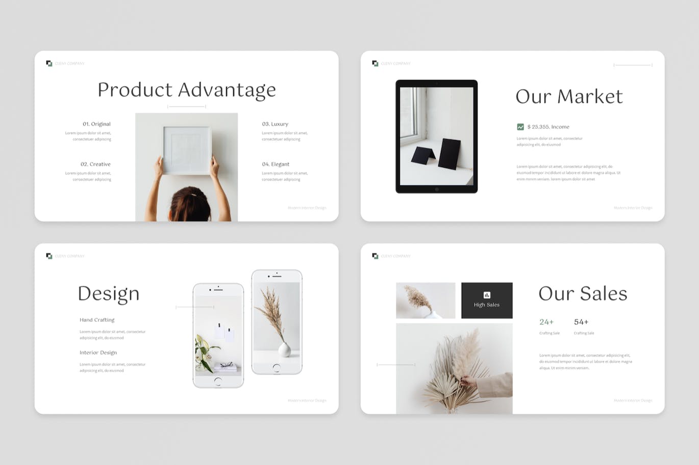 干净的现代室内设计PPT模板是一种专门设计用于展示现代室内设计项目的演示文稿模板。它提供了多种简洁、时尚和视觉吸引力的幻灯片布局和图表元素,帮助您有效地呈现室内设计的创意和概念。这个模板的用途广泛,适用于室内设计师、建筑师、装修公司等相关行业的演示和展示活动。您可以使用这个模板来展示室内设计项目的平面布局、色彩方案、材料选择、家具摆放等方面的信息。通过模板中提供的图表、图像和排版样式,您可以制作出一份简洁、精美和具有现代感的现代室内设计演示文稿。