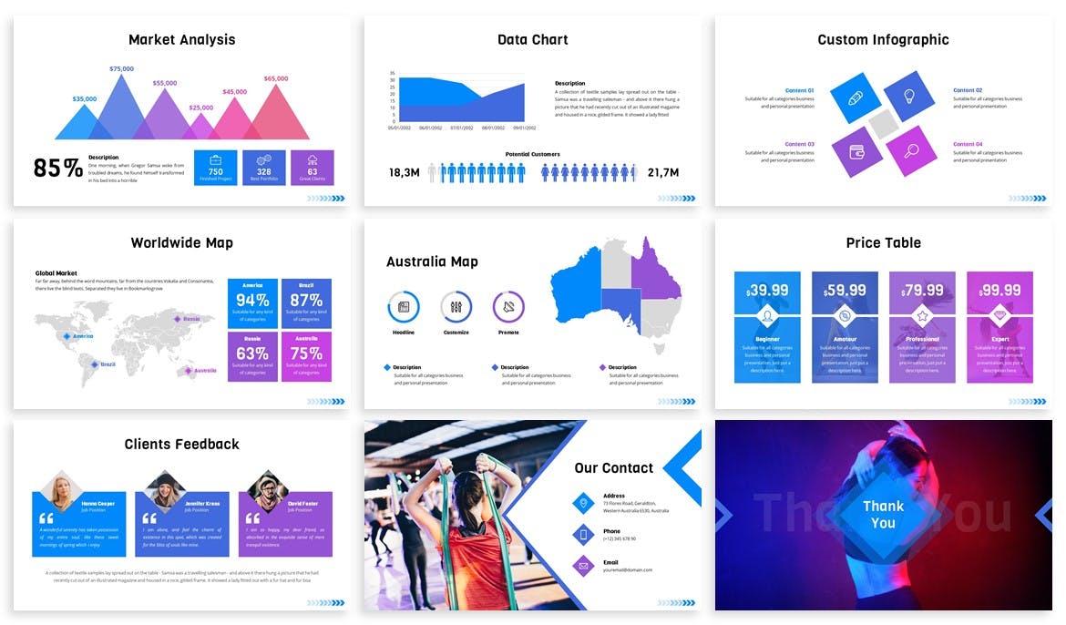 这是一个现代和创造性的舞蹈培训班推广Keynote幻灯片素材,这里我们使用舞蹈作为预览/主题。但是,您可以根据需要编辑它,也可以用于其他目的。例如,这是适用于创意机构,体育,汽车等。所有元素从形状到颜色都是可编辑的,无需其他软件即可编辑,只需使用Keynote。