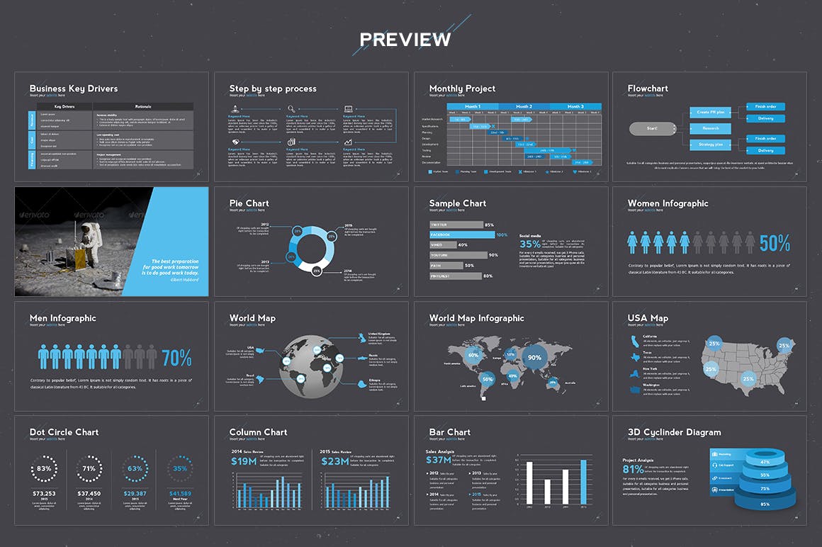 一个独特风格的航天技术主题Keynote幻灯片模板,让您的演示文稿在一分钟内看起来很棒。该航天幻灯片模板适用于创意产业,技术,金融,IT,网络等。50个自定义幻灯片,其中包括手工制作的信息图,图表,流程,项目时间表,作品集,图库,地图等。所有元素从形状到颜色都是可编辑的,不需要其他软件来编辑它。