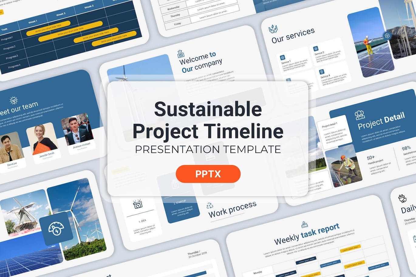 **可持续项目时间表 – Powerpoint 模板**是专业的创意 Powerpoint 设计。此模板是为您的初创公司或业务资料、营销或规划师创建的。 Zip 文件不包含图像,因此您可以轻松地将自己的图像添加到模板中。这有助于向您的业务客户或业务合作伙伴介绍或推广您的公司、产品或任何项目,使其更上一层楼。
