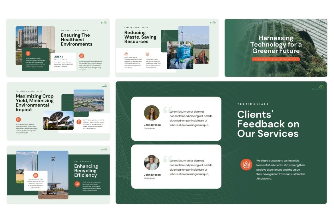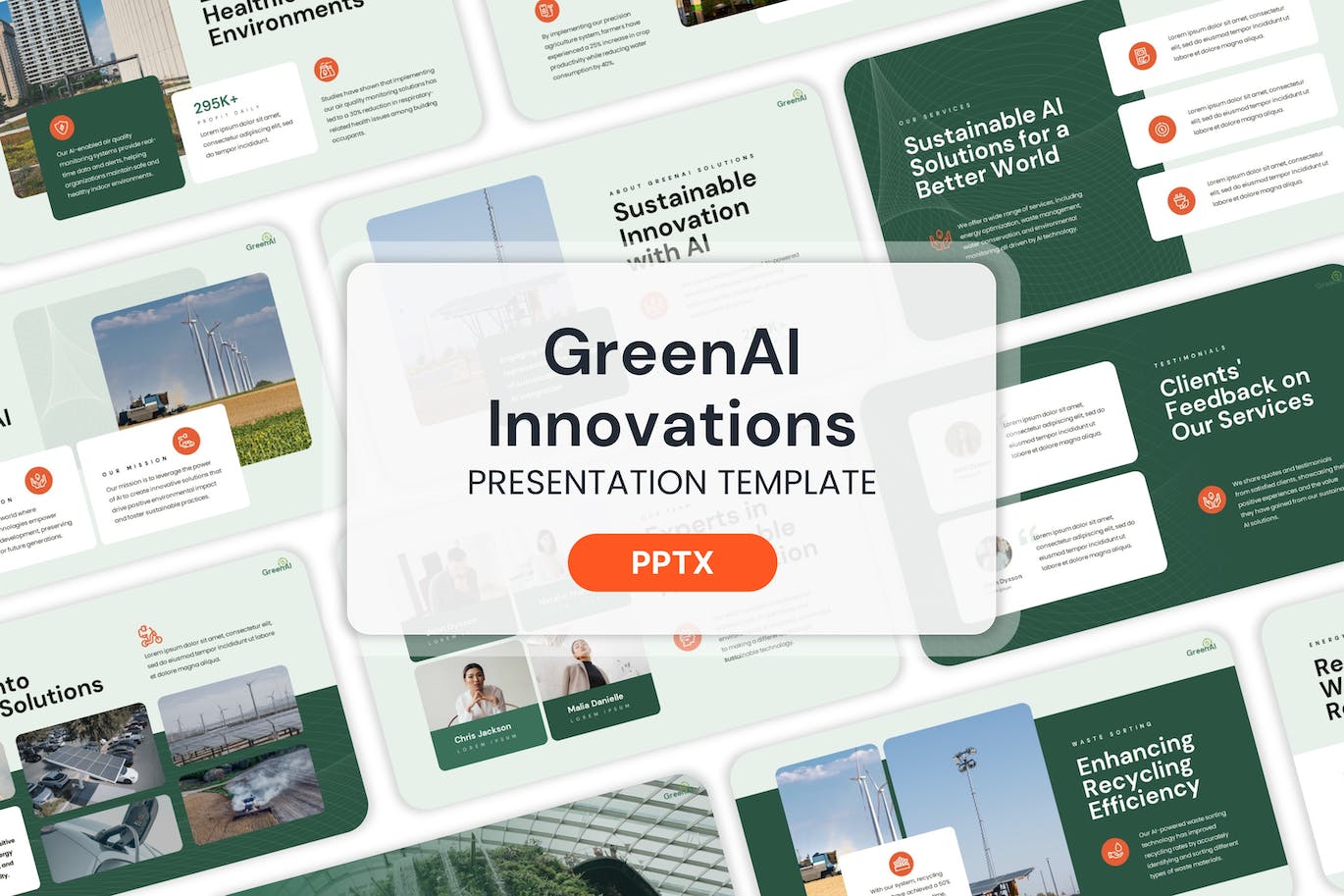 **GreenAI Innovations – Powerpoint 模板**是专业的创意Powerpoint 设计。此模板是为您的初创公司或业务资料、营销或规划师创建的。 Zip 文件不包含图像,因此您可以轻松地将自己的图像添加到模板中。这有助于向您的业务客户或业务合作伙伴介绍或推广您的公司、产品或任何项目,使其更上一层楼。