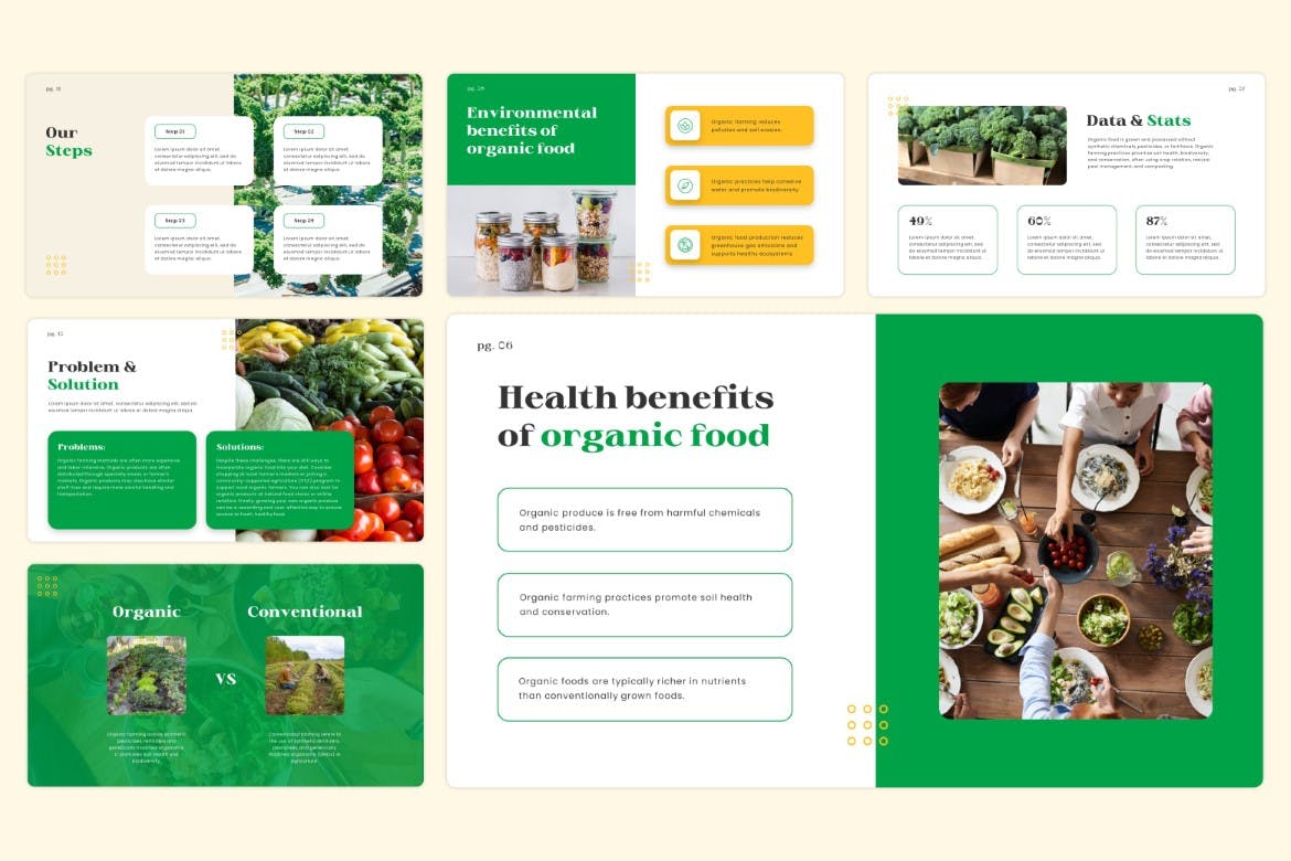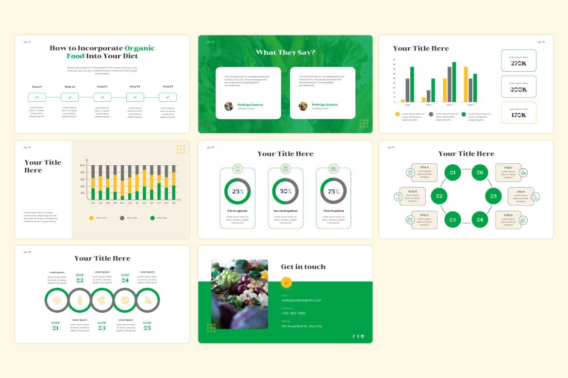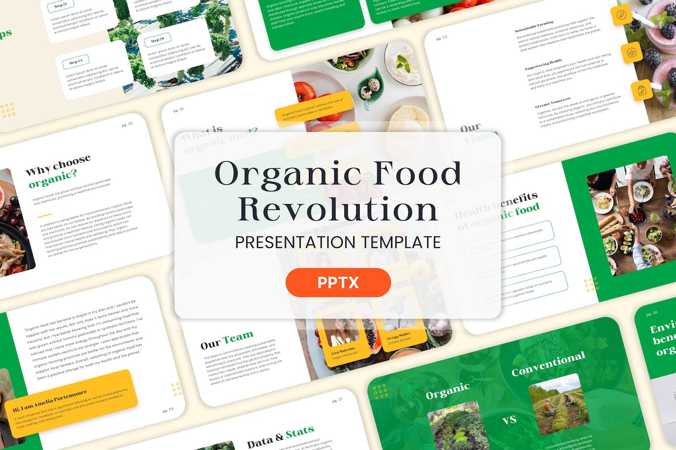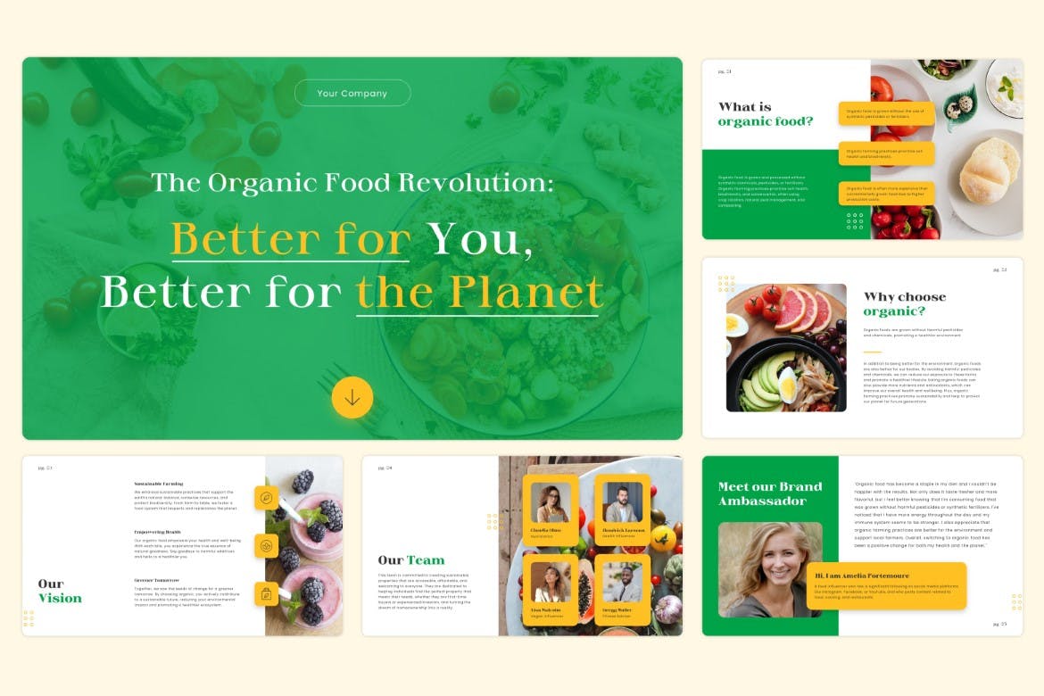 **有机食品革命 – Powerpoint 模板**是专业的创意Powerpoint 设计。此模板是为您的初创公司或业务资料、营销或规划师创建的。 Zip 文件不包含图像,因此您可以轻松地将自己的图像添加到模板中。这有助于向您的业务客户或业务合作伙伴介绍或推广您的公司、产品或任何项目,使其更上一层楼。
