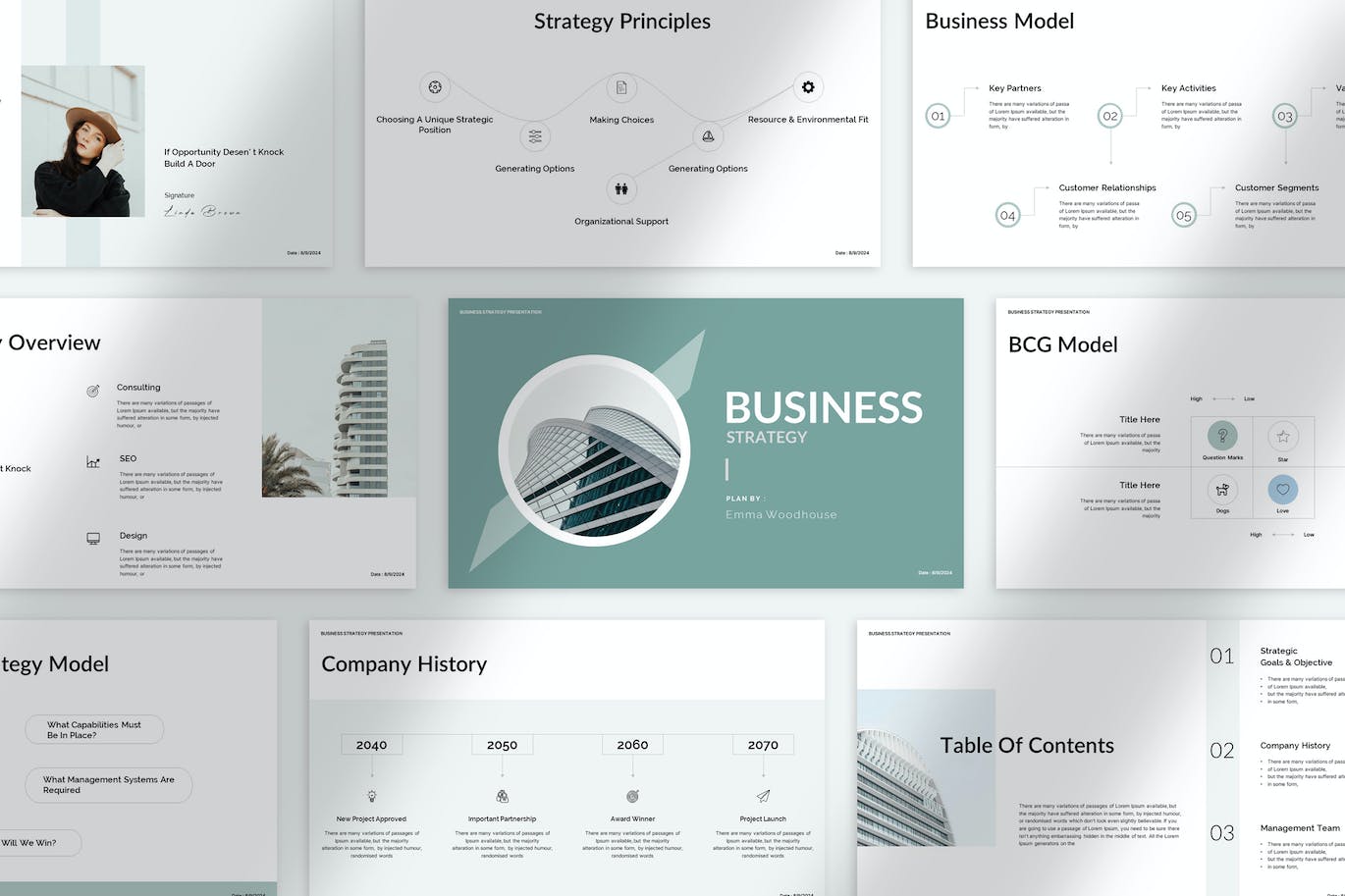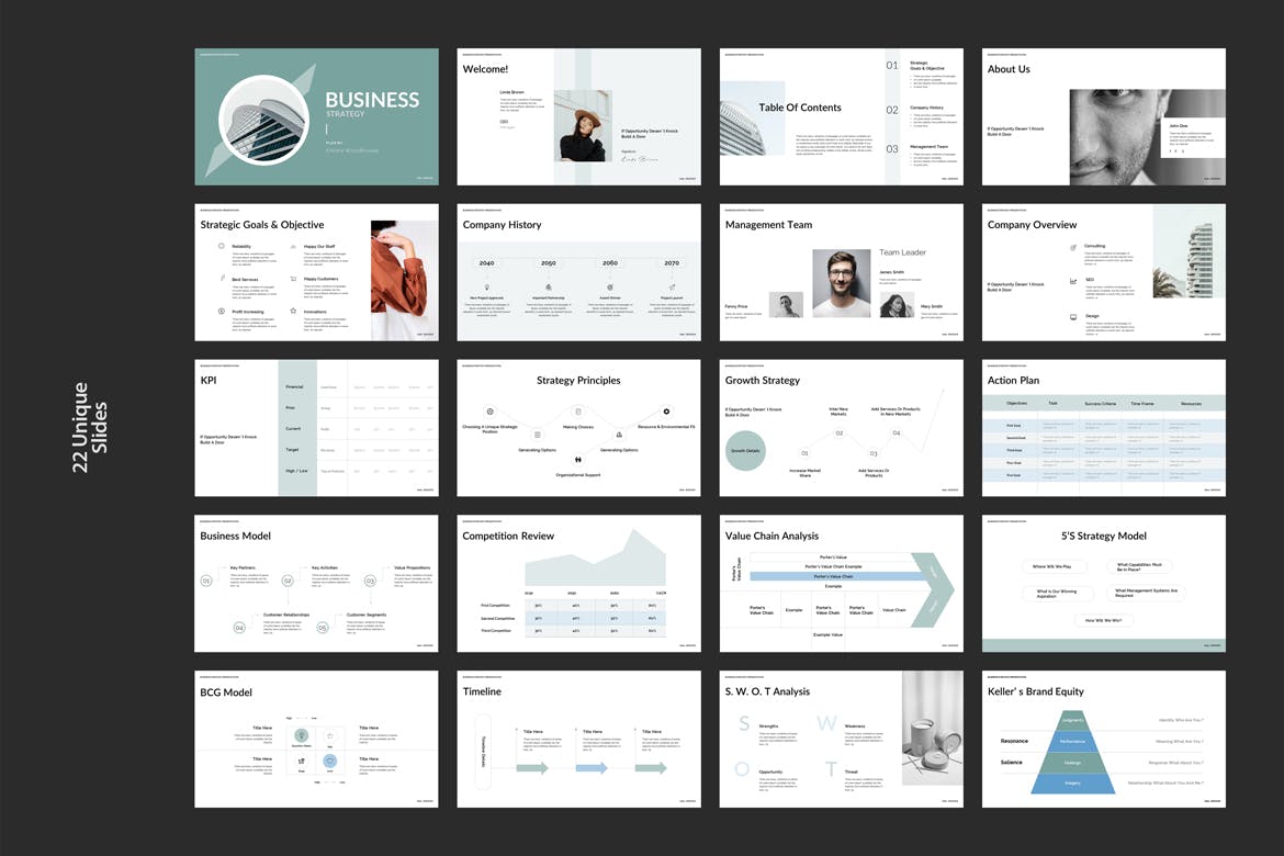 业务战略演示允许您简单地添加徽标和图像并编辑品牌颜色和版式,然后就可以开始了。请不要浪费您的时间,我们已经为您完成了所有艰苦的工作。