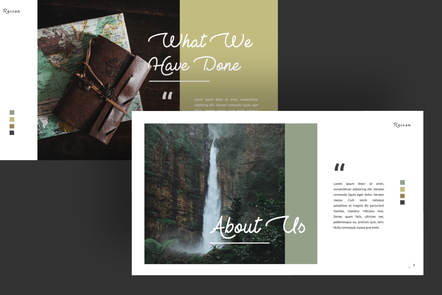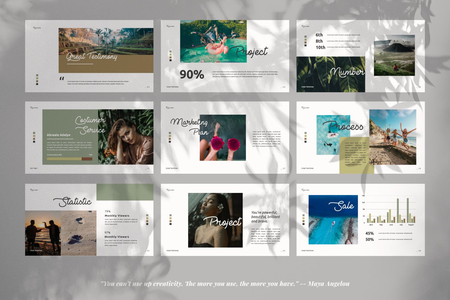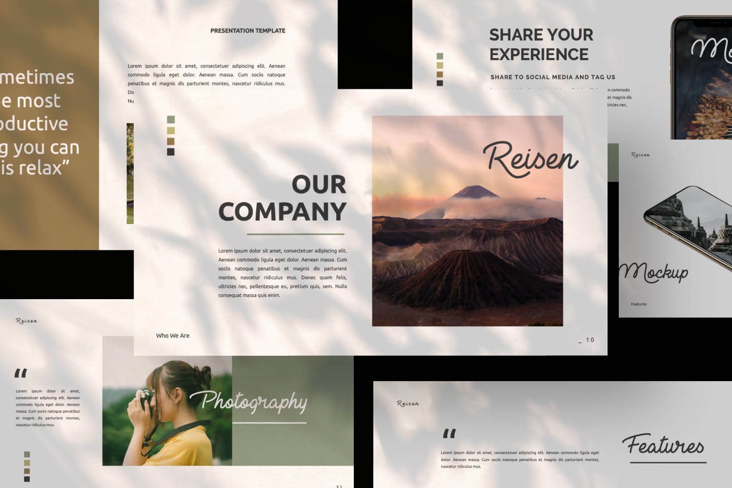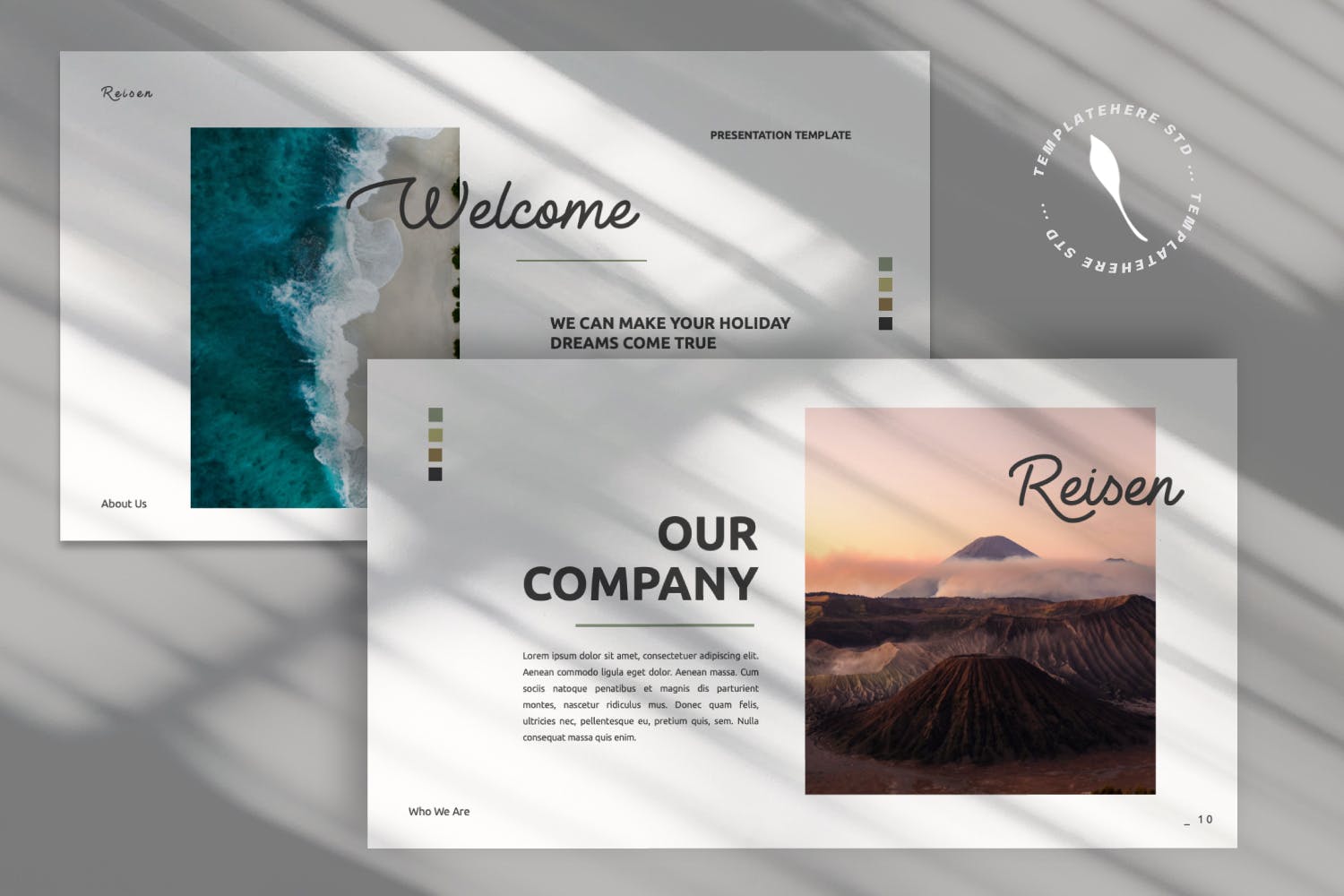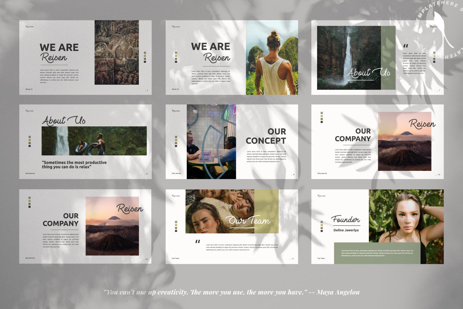 旅游品牌推广主题商业Keynote幻灯片演示模板,具有专业,超现代和独特的设计,每张幻灯片的制作都充满对细节的热爱和关注。这是一个多功能旅行幻灯片模板,可以用于任何类型的演示文稿:商业,作品集,企业,品牌,广告等。