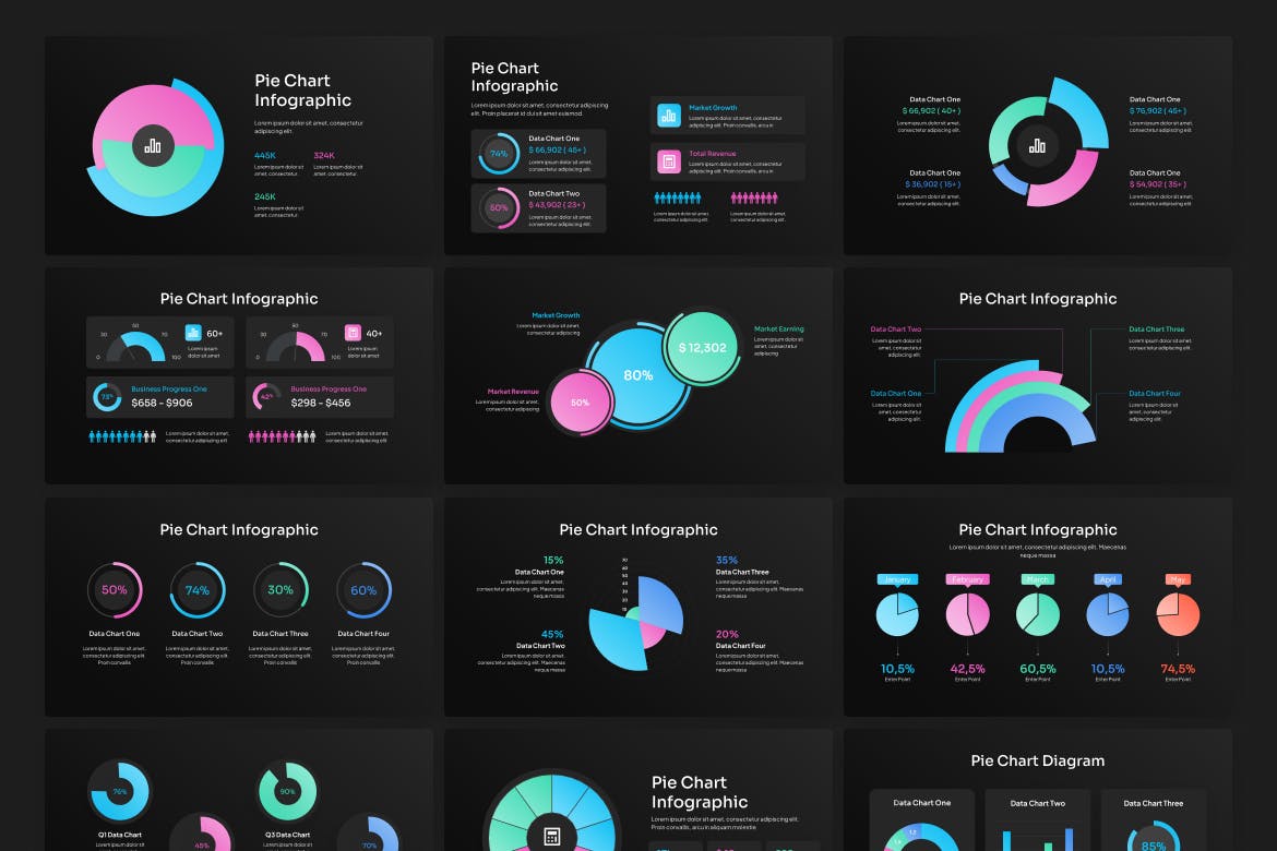 **饼图信息图渐变PowerPoint**