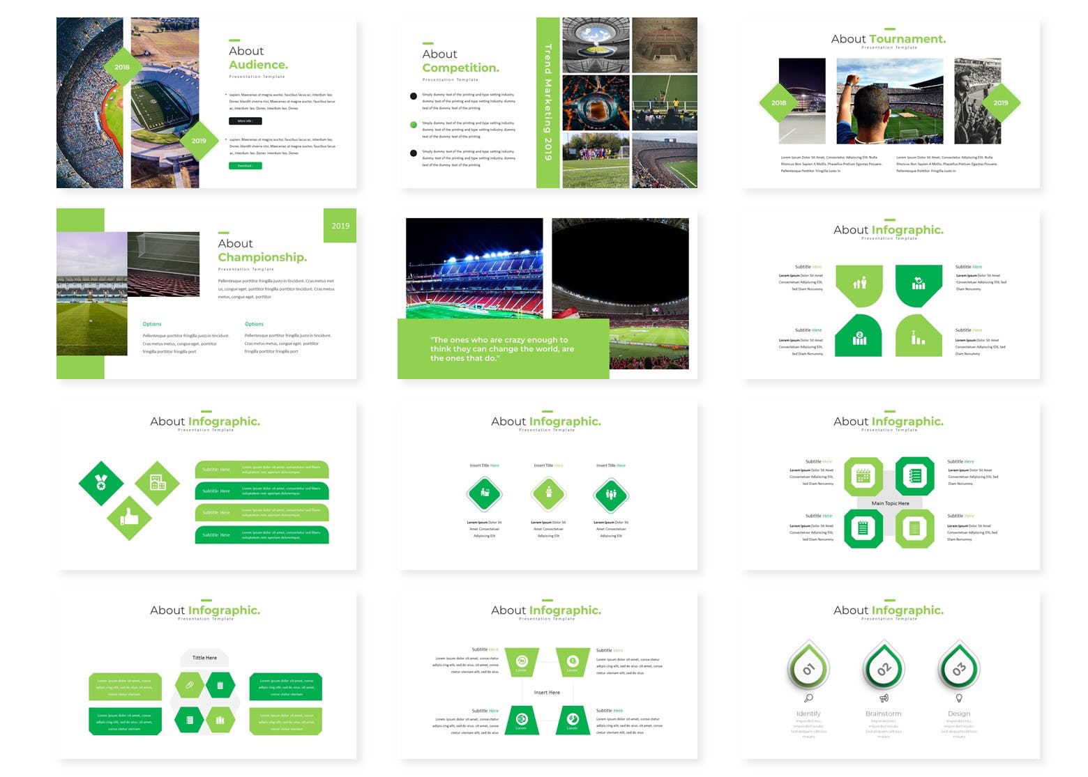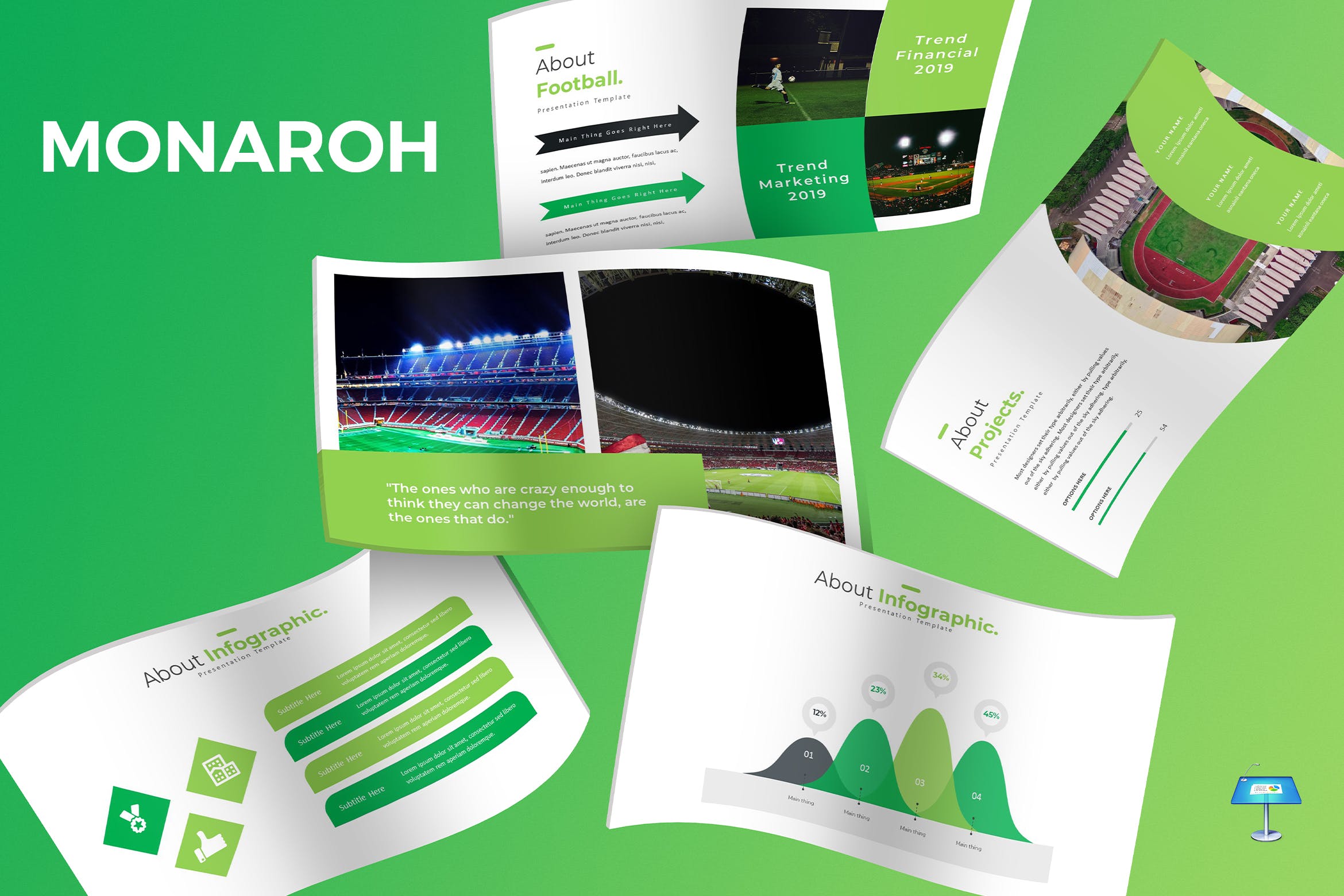 这是一款适合多用途演示业务或个人需求的足球体育运动Keynote幻灯片模板。此足球幻灯片模板上的所有元素都可以通过Keynote进行编辑,输入内容,将图像替换为占位符,更改颜色,然后所有演示都包括一个动画幻灯片并将幻灯片展示给你的客户。
