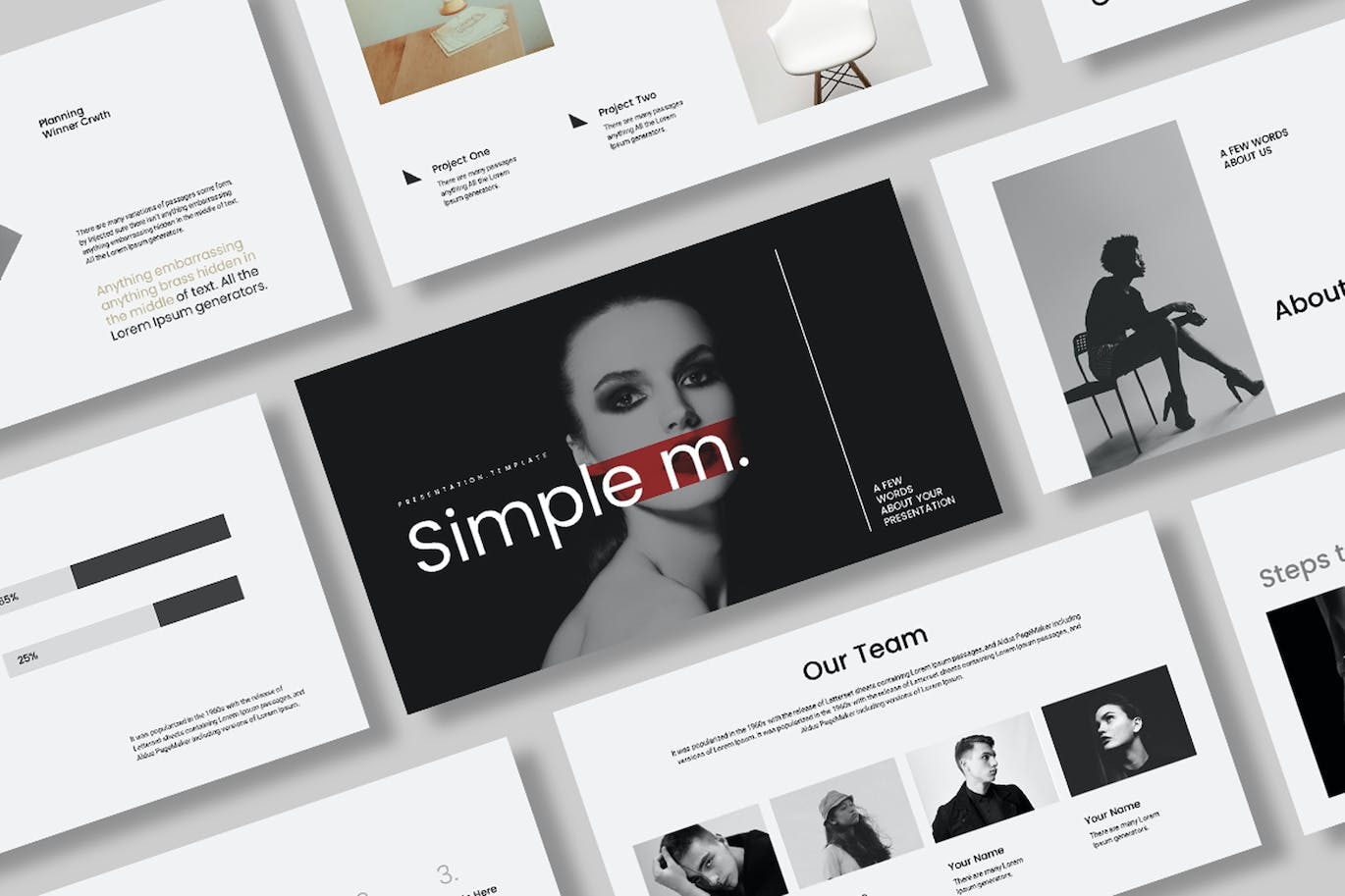 简单的演示模板。所有幻灯片都采用了很棒的风格设计。所有元素都易于编辑和更改