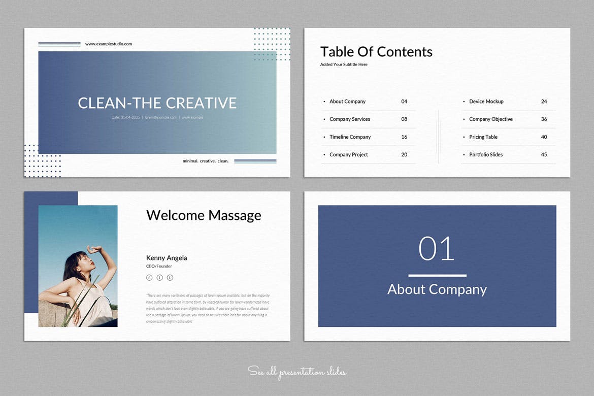 介绍\“Clean:The Creative Presentation Template”-一个精心制作的48张独特幻灯片的集合,以16:9的纵横比设计。这个完全可定制的模板提供了轻松的编辑,使您能够轻松创建专业演示文稿。Clean\时尚而现代的设计提升您的内容并吸引您的观众。