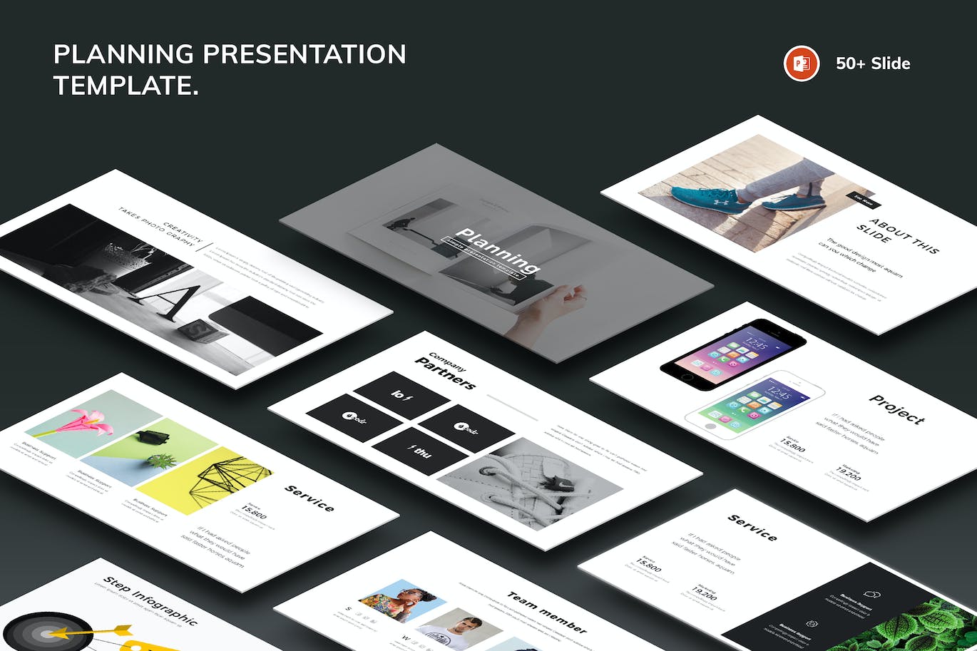 此规划PowerPoint模板包含51张有用的幻灯片,用于商业计划和流程,