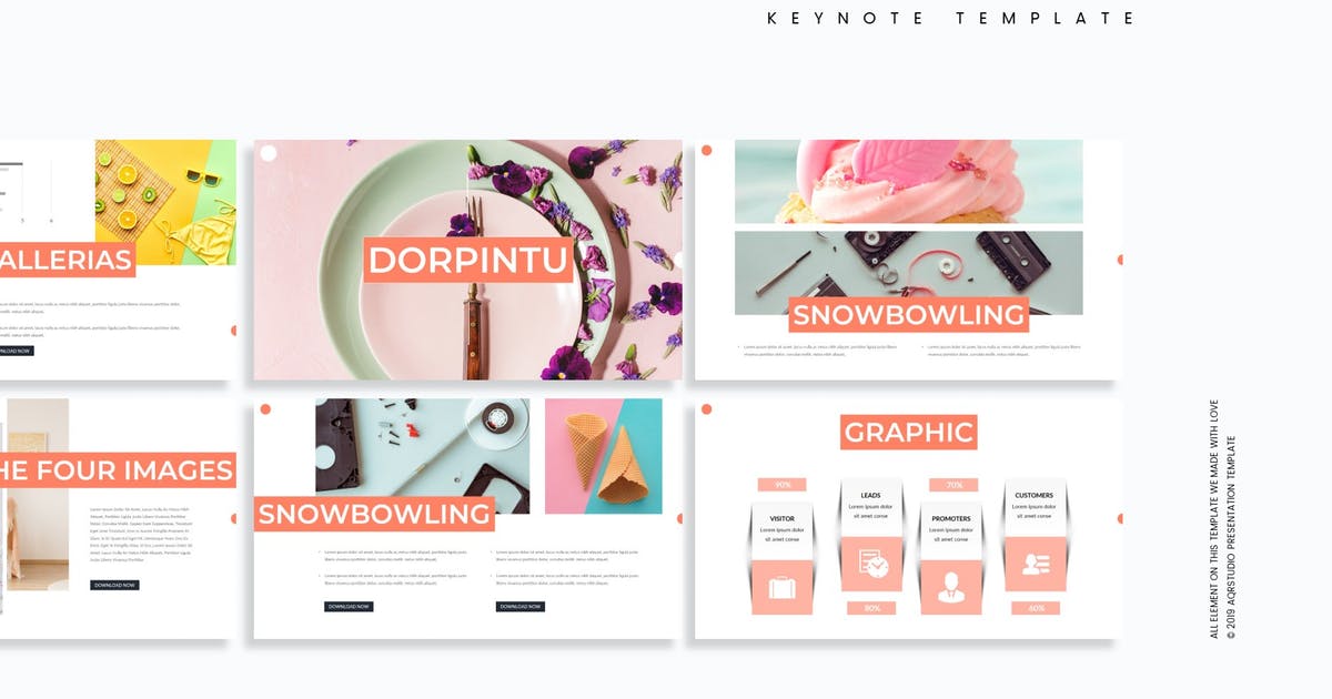 这是一款适合多用途演示业务或个人需求的蛋糕甜点主题Keynote创意模板。此甜点幻灯片模板上的所有元素都可以通过Keynote进行编辑,输入内容,将图像替换为占位符,更改颜色,然后所有演示都包括一个动画幻灯片并将幻灯片展示给你的客户。