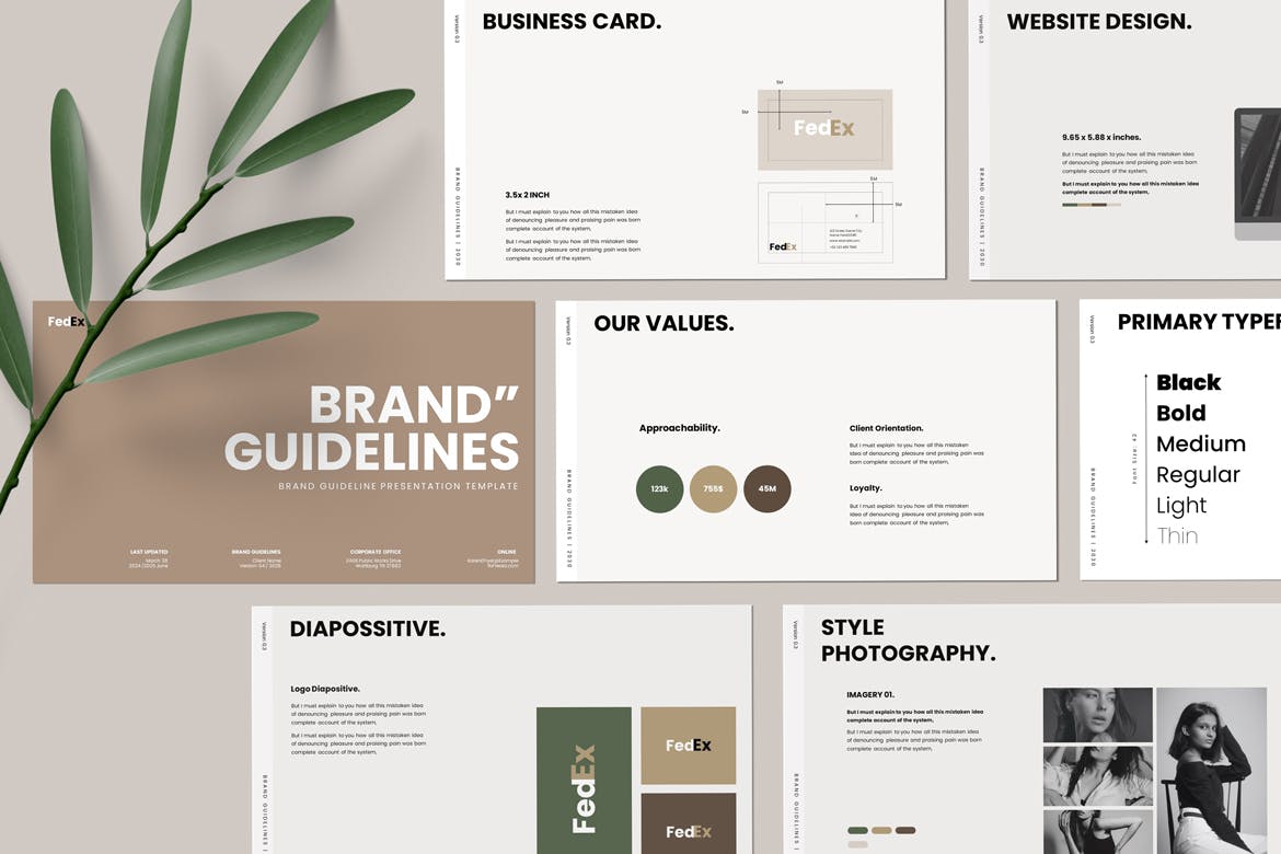 制定联邦快递|品牌指南模板可能看起来很复杂,但该模板的设计目的是让您轻松完成这项艰巨的任务,并帮助您制定清晰简洁的品牌战略。使用此品牌指南模板,以专业而美丽的方式向您的客户展示您惊人的才华、技能、服务和产品。一份优雅而女性化的文件,非常适合设计师、摄影师、生活方式、时尚、美容博主、创意企业、化妆师和造型师。