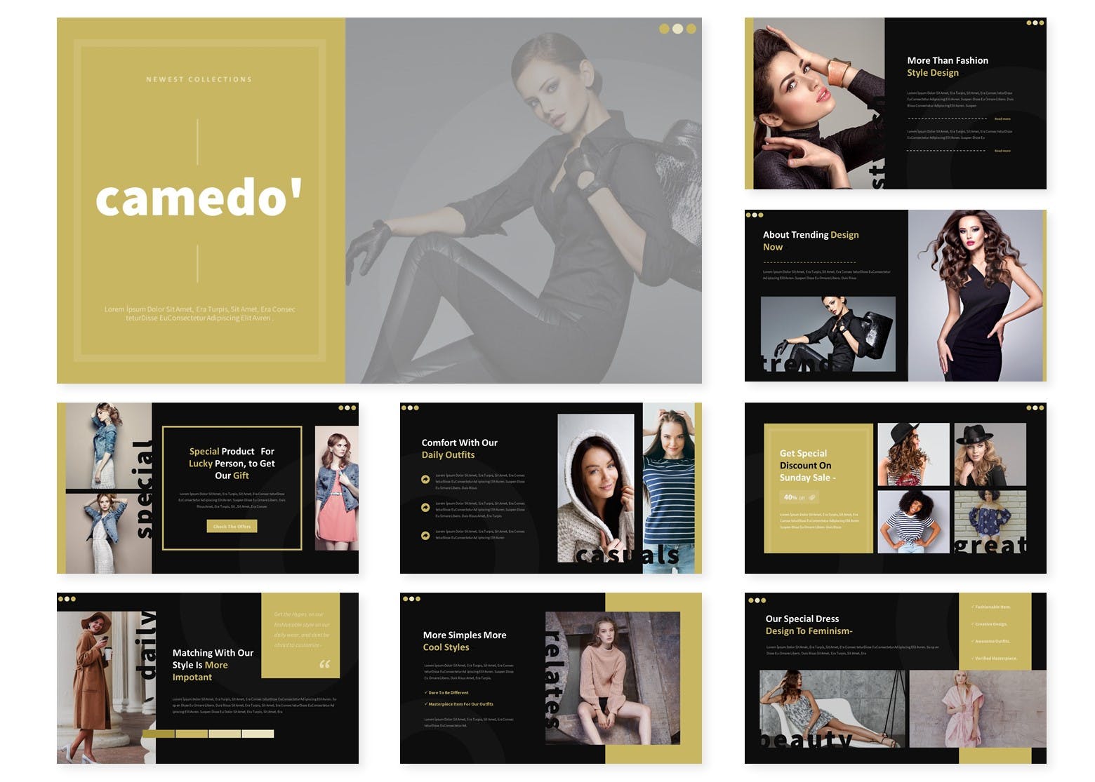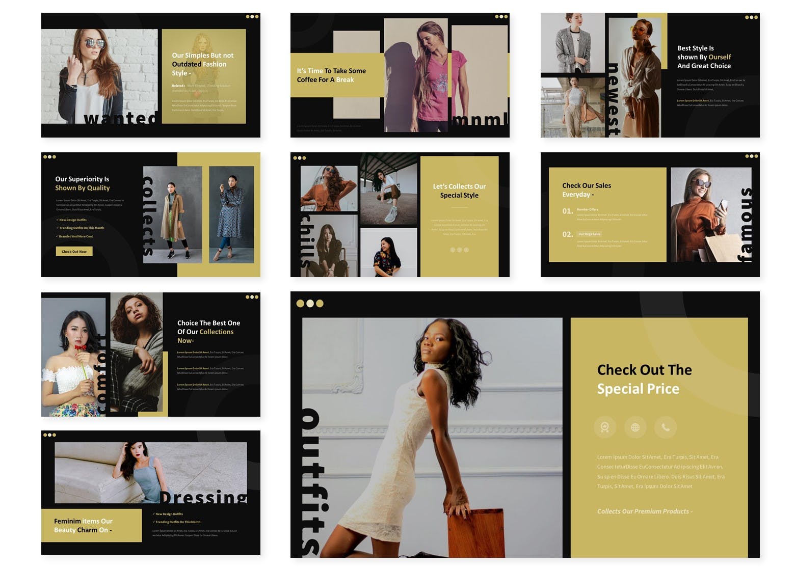 立即获取适用于所有企业和个人需求的时尚服装产品展示PPT/Keynote/谷歌幻灯片三合一模板。此模板上的所有元素都可以通过Powerpoint、Keynote和GoogleSlide进行编辑,不需要其他软件,输入内容,将图像替换为占位符,更改颜色,并且所有演示都包括动画幻灯片,并向客户展示您的幻灯片。示例图片仅用于展示目的,不包含在内。