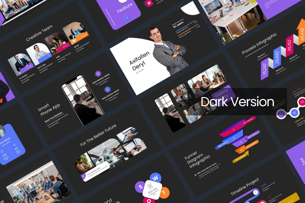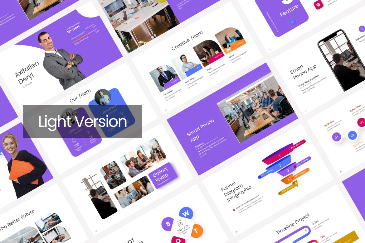 是一个极简风格的演示模板,非常适合用于商业演示、画册幻灯片、项目推介等。