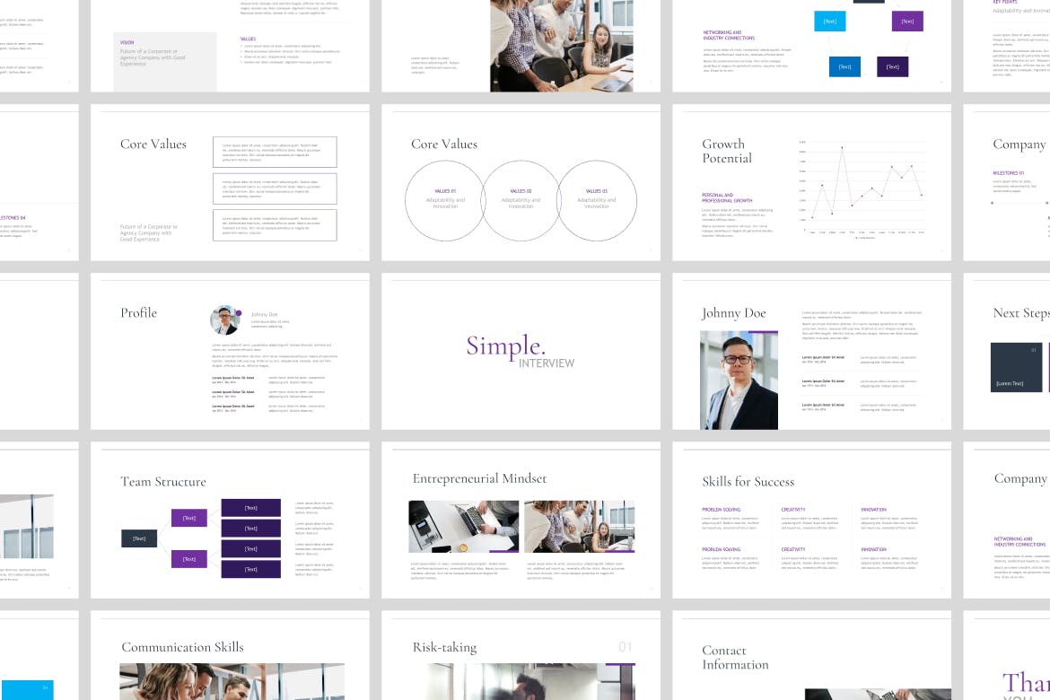 企业面试Powerpoint演示具有现代专业风格,适合且易于完全适应您的需求,易于在PowerPoint中使用。