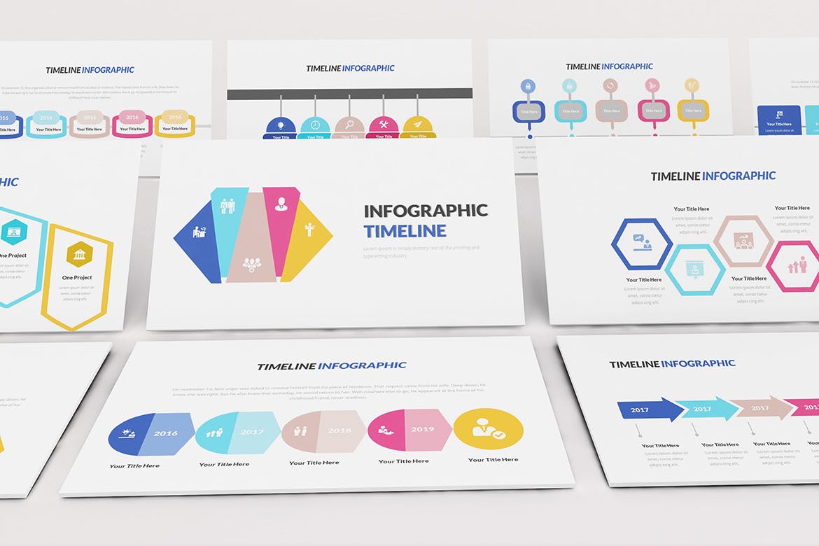 时间轴信息图表Keynote幻灯片模板是用于Keynote幻灯片演示文稿模板的多功能时间线图表。简洁的设计,简洁的元素可帮助您制定营销计划。高质量的品牌展示设计。只需复制即可将所需的幻灯片粘贴到演示文稿项目中。