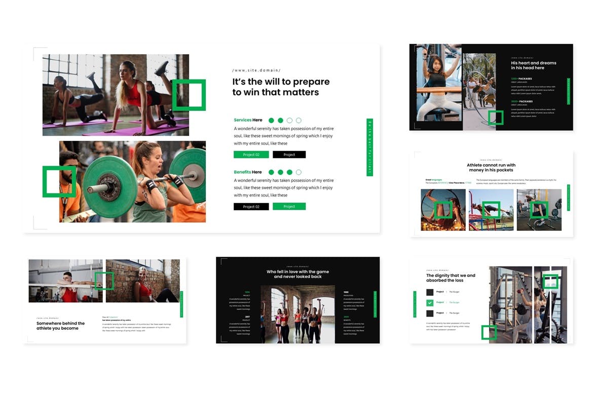 健身运动主题Keynote演示文稿模板,用于商务或个人需求的多功能演示文稿的绝佳模板。该模板中的所有元素都是使用Keynote制作的,只能使用Keynote进行编辑,输入内容,将图像替换为占位符,更改颜色,所有演示都包括动画幻灯片,并将幻灯片展示给业务合作伙伴。
