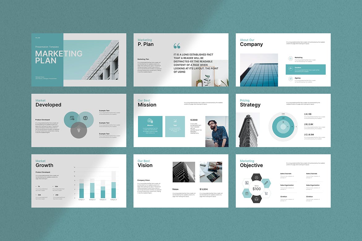 营销计划演示模板允许您简单地添加徽标和图像,并编辑您的品牌颜色和排版,您就可以开始了。请不要浪费你的时间,我们已经为你做了所有的艰苦工作。