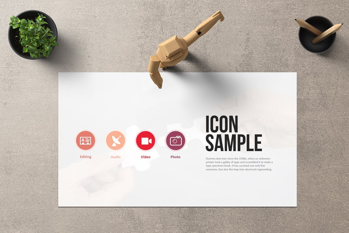 创意设计公司Keynote演示文稿设计模板,包含28个随时可用的图标幻灯片。具有可扩展、色彩丰富且用途广泛的特点。适用于商业、广告、商业演示、电子商务或产品推广等。如果您正在寻找专业演示的独特不同设计,这款模板将是你的最佳选择。