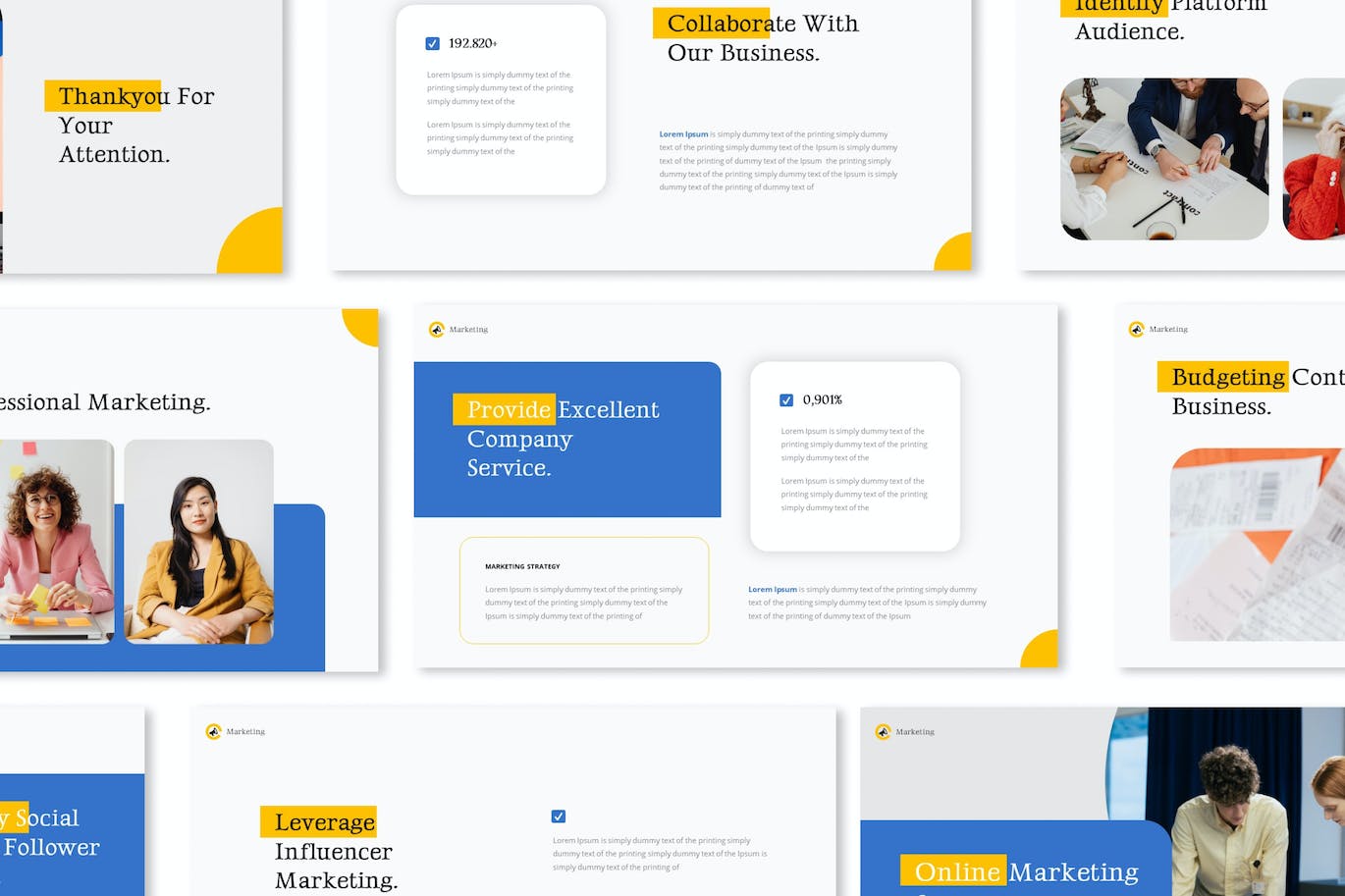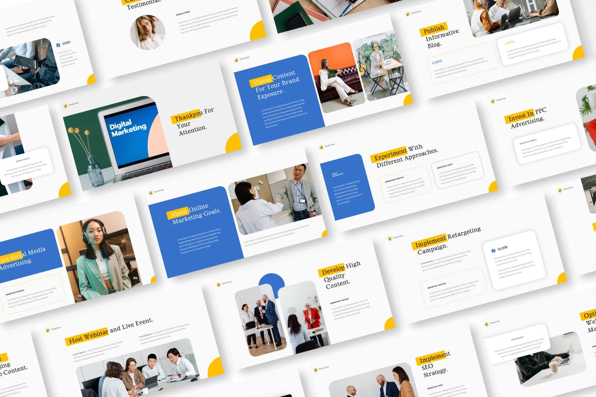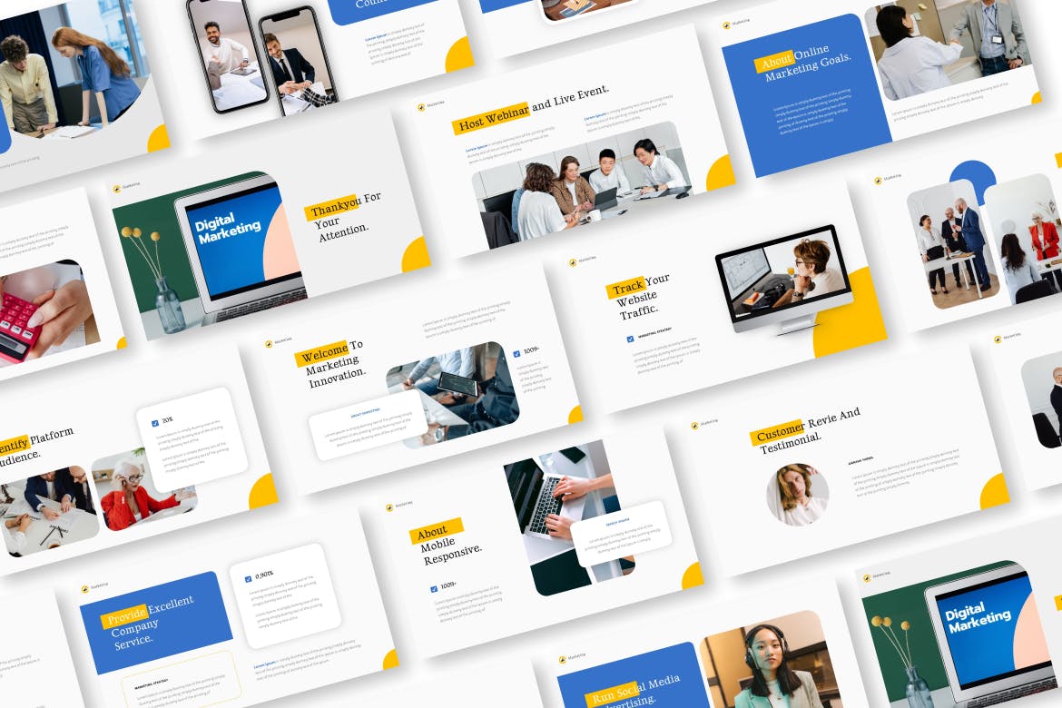 适用于您的公司简介、营销和多功能业务的在线营销策略主题演讲模板。