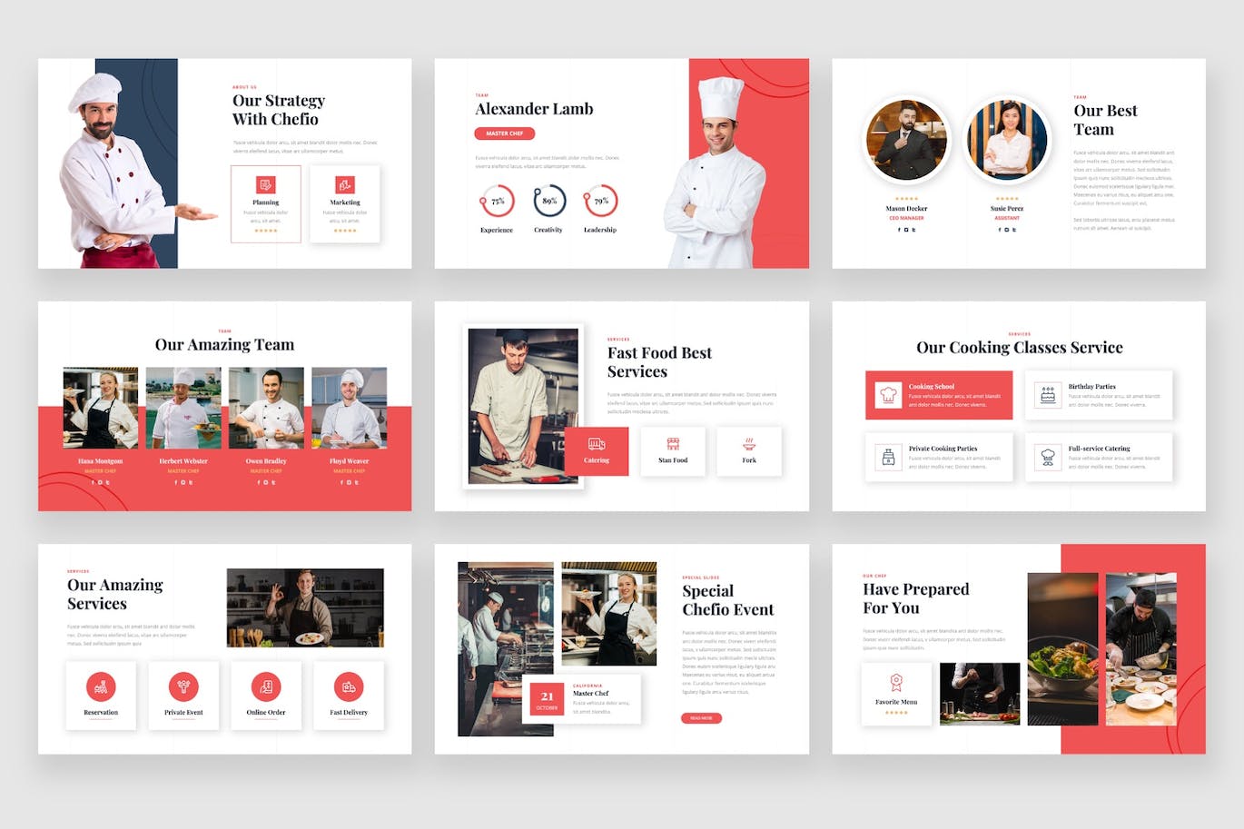 烹饪学校和烹饪主题演讲是一个多用途的烹饪学校主题演讲模板,可用于任何类型的演示:业务、投资组合、企业、公司、厨师、烹饪学校、烹饪,也可用于定制制作。