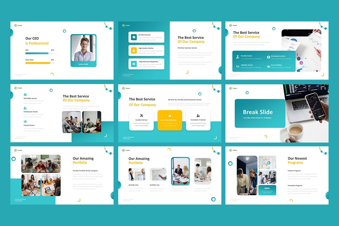 该模板非常易于使用,优雅,使用平面颜色,还有信息图表,包括条形图、圆形、线条等。用户可以根据自己的喜好定制设计,因为该模板可以用于任何领域的公司,或者可以称为多用途幻灯片。