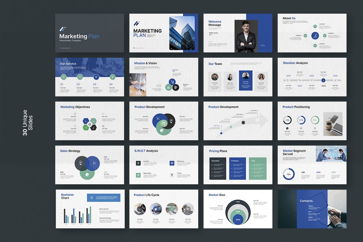 营销计划 – 适合您的演示文稿样式模板,您需要独特、专业、干净、有创意、简单的演示文稿模板。所有幻灯片的设计风格都很棒。所有元素都易于编辑,您可以轻松更改颜色以使其与您的个人或公司品牌相匹配。