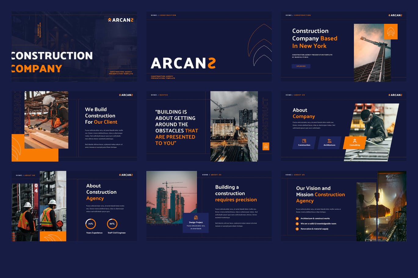 这是一种多用途建筑 Powerpoint 模板,可用于任何类型的演示:业务、投资组合、企业、公司、业务、建筑、工业,也可用于定制生产。