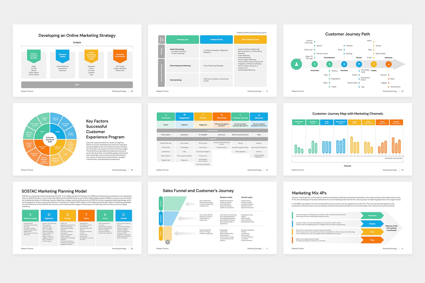 **PowerPoint 营销策略:25 张具有真实内容的独特幻灯片:营销策略、五角大楼营销策略、客户旅程、营销计划阶段、营销策略漏斗、B2C 买家旅程的内容、B2B 买家旅程的内容、发展社交媒体战略、营销组合 4P、销售漏斗、在线数字销售漏斗 3.0、销售漏斗和客户旅程、在线营销、营销管理周期、关键绩效指标 KPI、4P 营销组合、规划营销活动(模板)、按设备类型比较用户(模板)、市场细分,12走向成功,制定在线营销策略,传统的离线和在线工具,客户旅程路径,成功的客户体验计划的关键因素,带有营销渠道的客户旅程图,SOSTAC 营销规划模型。仅可编辑形状:轻松更改大小和颜色,无需 Photoshop 或 Illustrator!