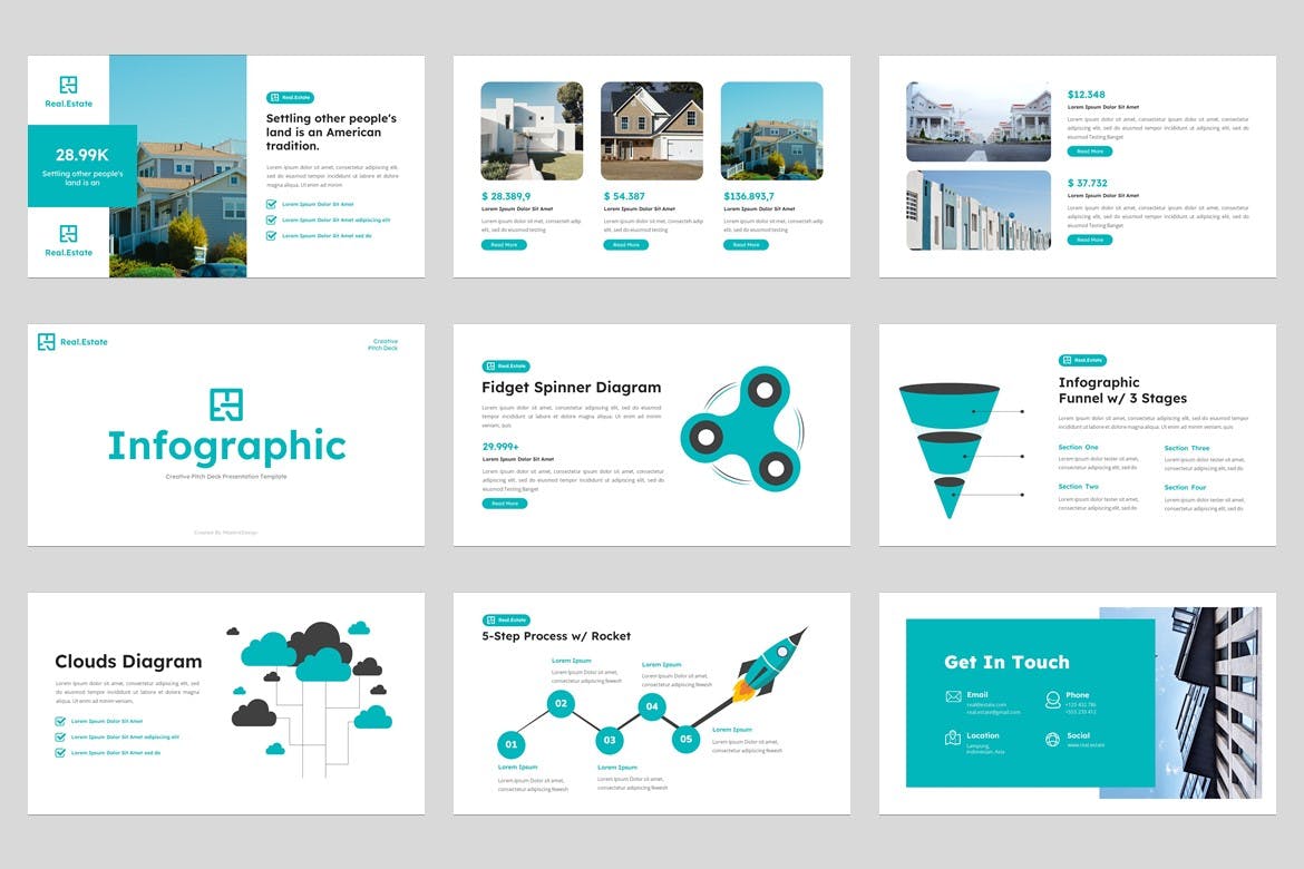 房地产 Powerpoint 模板具有专业、超现代和独特的设计,每张幻灯片都是用爱和对细节的关注来创建的。可用于任何类型的演示:业务、投资组合、公司、品牌、广告等。