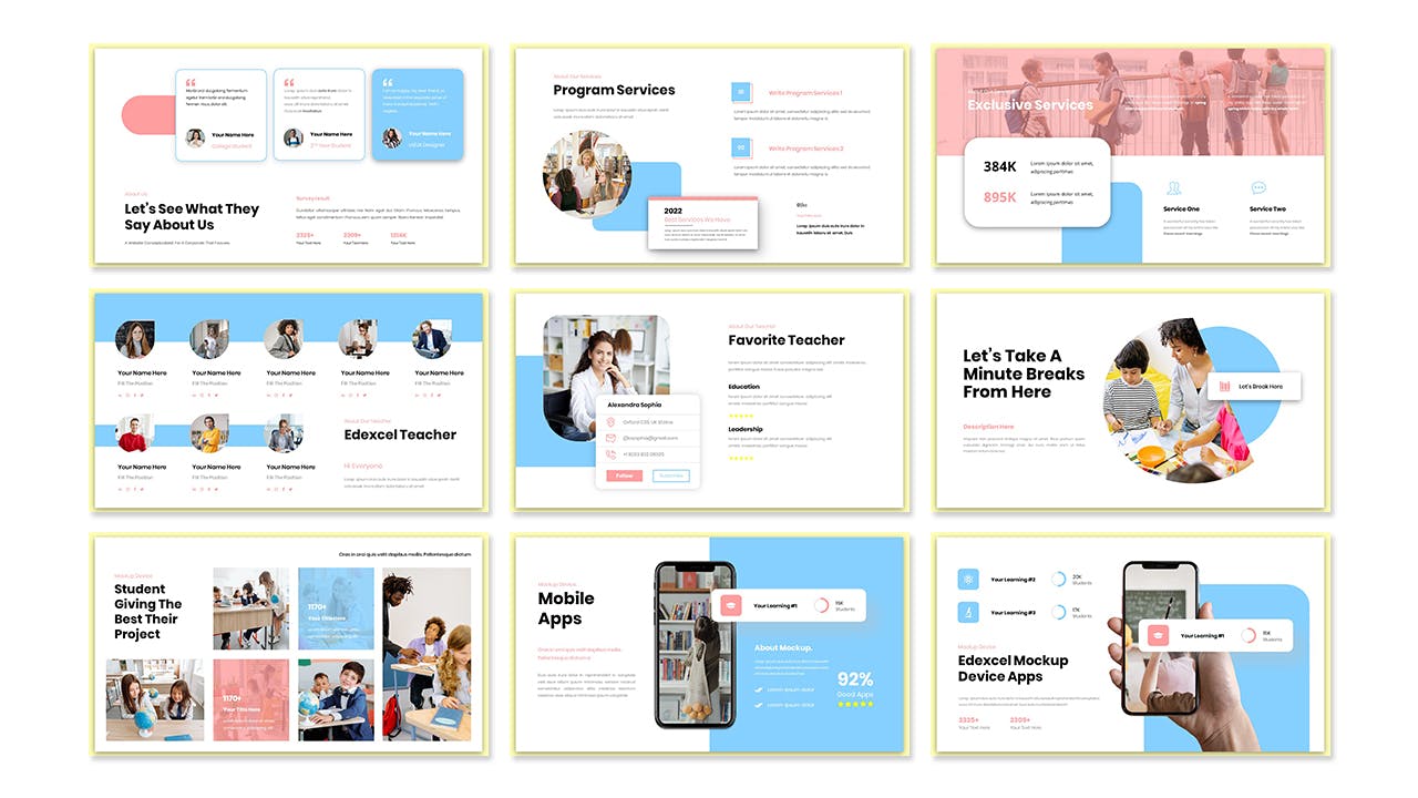 教育机构演示PPT幻灯片模板,此演示模板可用于各种目的,例如:创意机构、公司简介、公司和业务、投资组合、摄影、宣传材料、启动,也可用于个人投资组合。