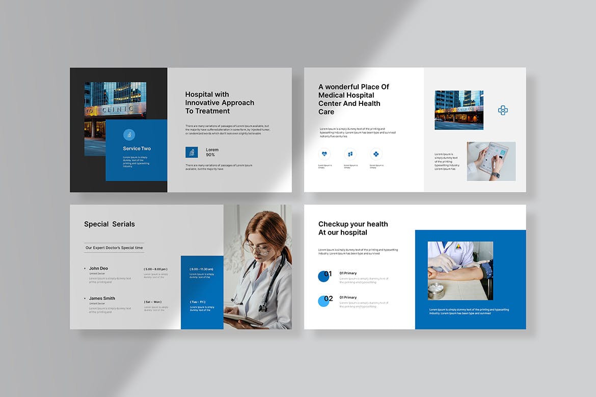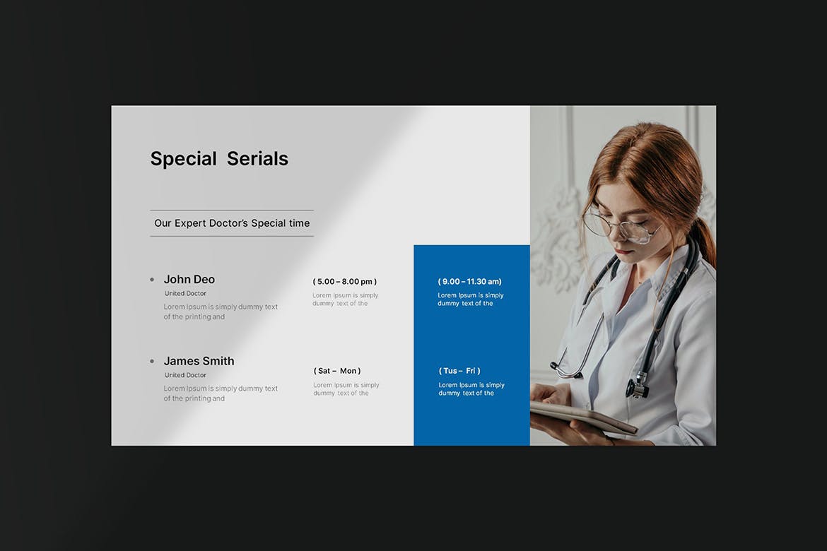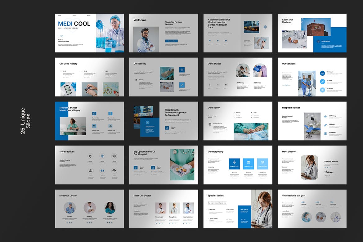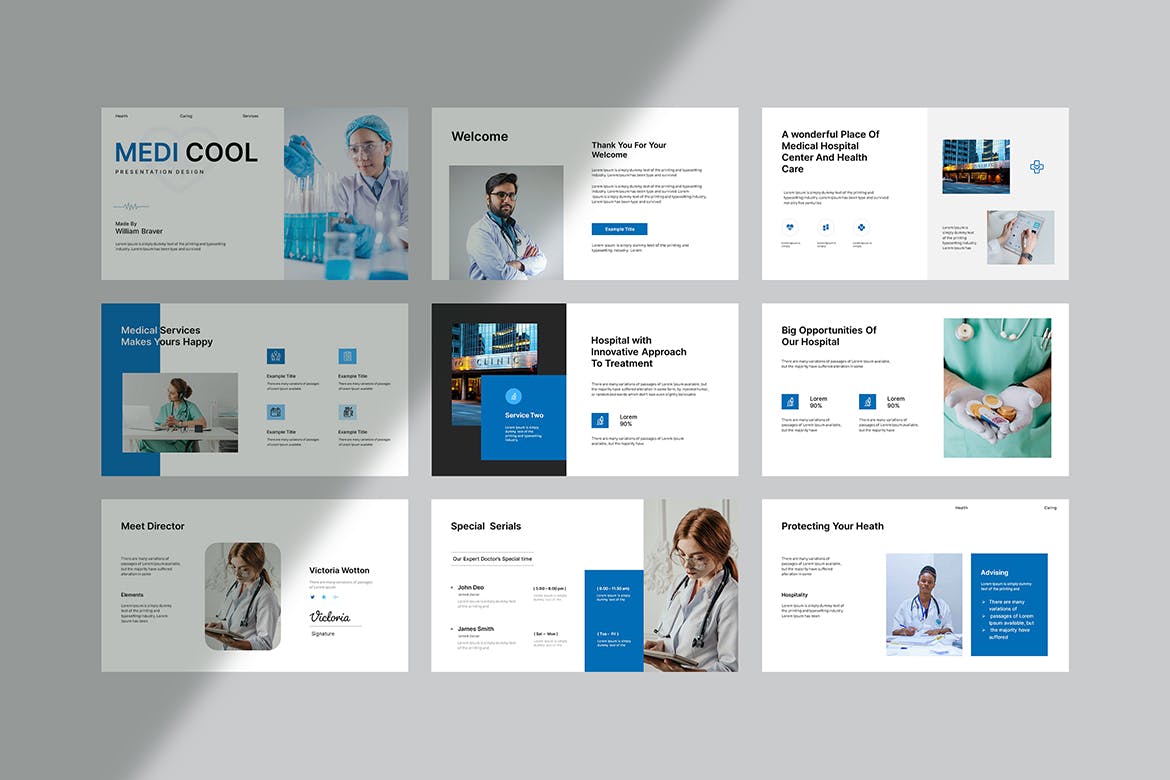 医疗演示模板允许您添加徽标和图像并编辑品牌颜色和版式,然后就可以开始了。请不要浪费您的时间,我们已经为您完成了所有艰苦的工作。