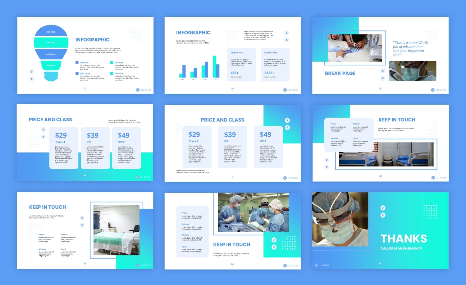 医院和保健培训PowerPoint演示文稿模板是非常专业、干净、现代且易于使用的演示模板。可用于各种目的。