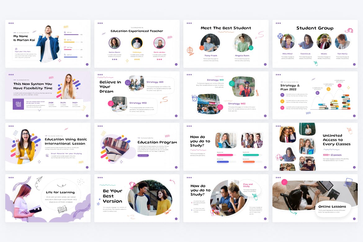 我们现在可以轻松找到许多令人惊叹的演示模板。因此,我们需要转变思维方式,不仅要展示完美的幻灯片,还要提升其中的体验。在这里,我们向您展示教育创意PPT设计模板,用于伴随您业务发展的每个阶段和整体品牌接触点,从开始一个新项目,在竞争对手中建立认可度,到以改进的目标主张结束它。