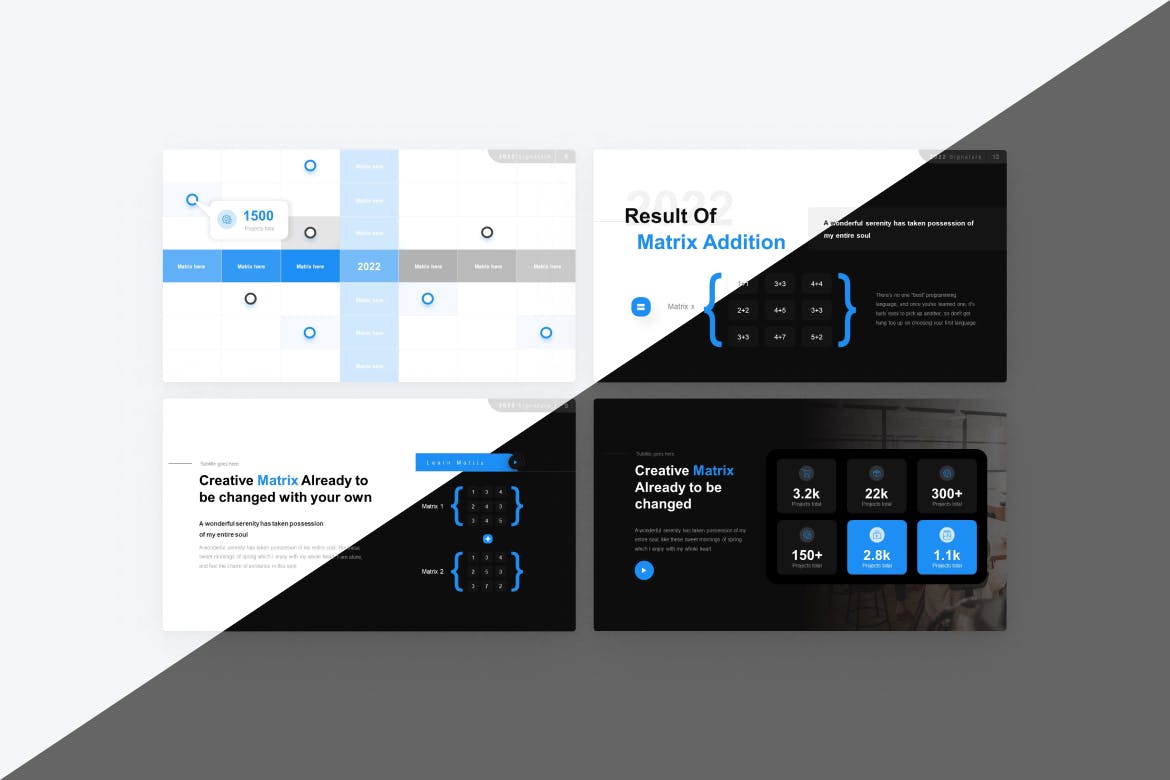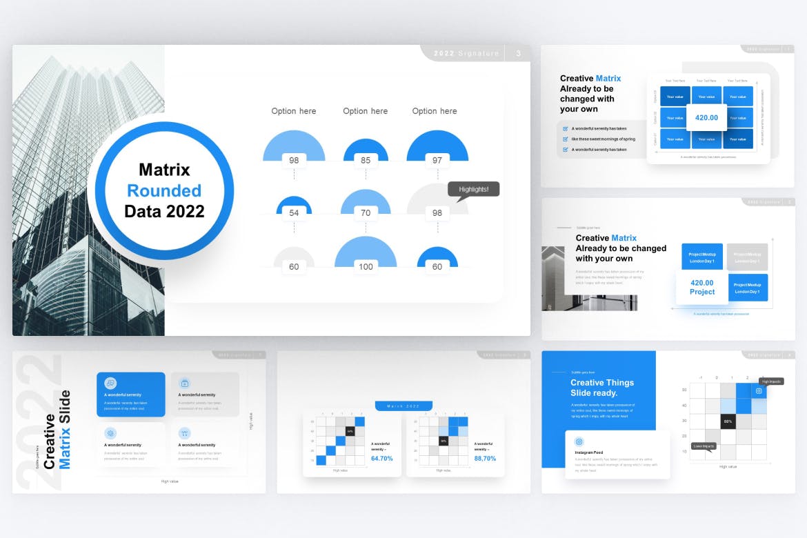 我们现在可以轻松找到许多令人惊叹的演示模板。因此,我们需要转变思维方式,不仅要展示完美的幻灯片,还要提升其中的体验。在这里,我们向您展示矩阵图表PPT幻灯片模板,用于伴随您业务发展的每个阶段和整体品牌接触点,从开始一个新项目,在竞争对手中建立认可度,到以改进的目标主张结束它。