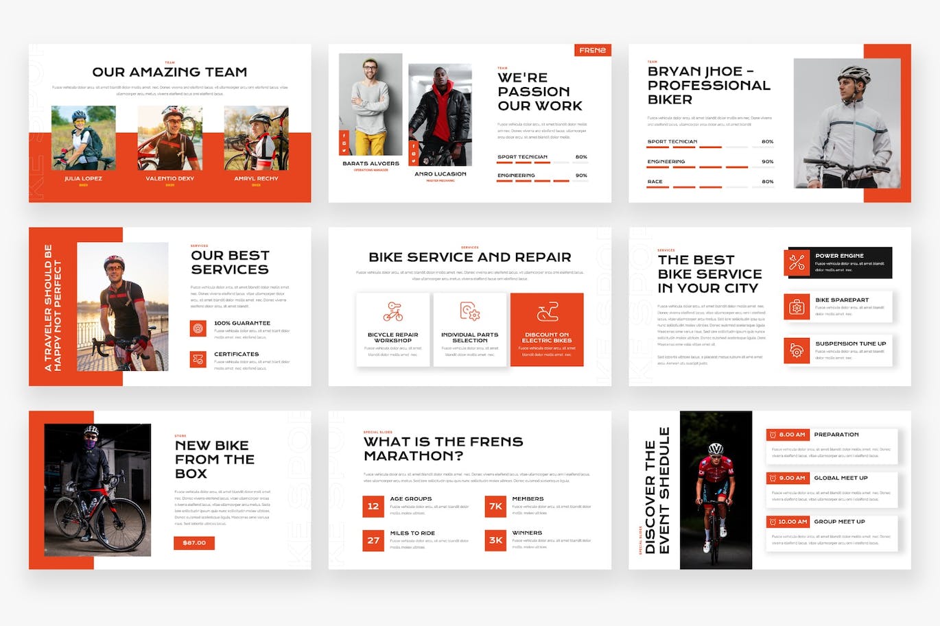 我们创建专业的设计和创意演示模板,以帮助您制作出独特而简洁的优秀演示文稿。我们创建的每个细节都经过精心设计。此 Powerpoint 演示文稿可用于自行车运动、马拉松、自行车。