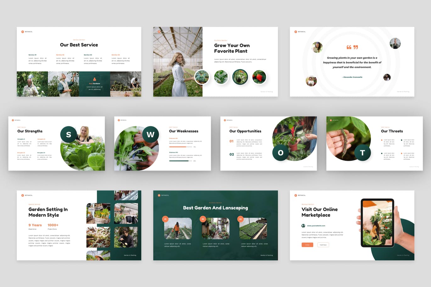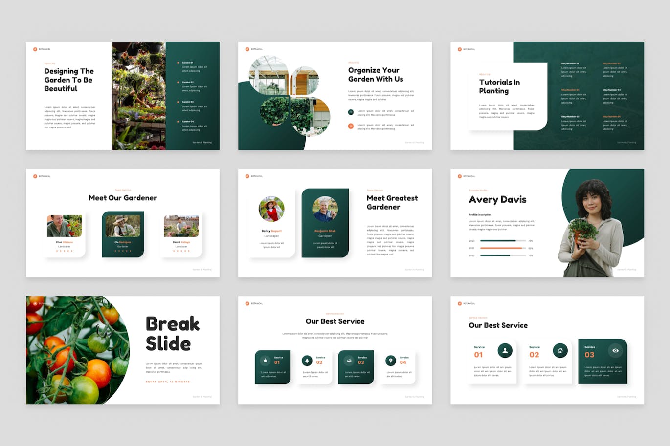 此演示模板适用于任何需要的目的,例如:农业、植物学、商业、农场、农业、花店、花园、园艺、场地管理员、景观、园林绿化、有机、种植、植物车间、生态学、环境、室内植物、草坪护理、自然、性质、有机农场、盆景、植物、装饰、植物群、植物、绿色、后院、树木、草坪,也可用于定制生产。此演示模板具有专业、现代、优雅、创意和独特的布局。