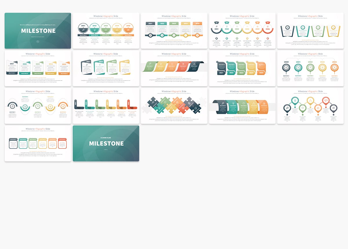 里程碑信息图表PPT模板,有 17 张独特的幻灯片/总共 204 张幻灯片,它有很多功能。它是用 Slide Master 制作的,使定制变得非常容易。它带有 12 种颜色变化和浅色背景。它内置 16:9 全高清分辨率。所有演示文稿均包含动画幻灯片和过渡效果。轻松编辑所有元素。适合那些想以简单有趣的方式展示自己业务的人。如果您正在寻找一种方法来突出公司的业务战略方面,那么这些业务元素非常有效。非常适合个人和专业用途等。