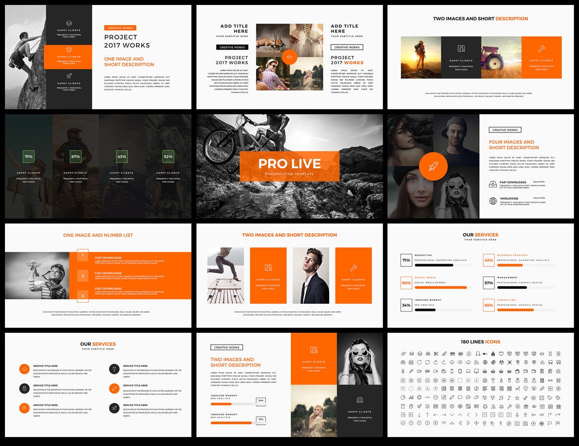 适合您创业的完美 PowerPoint 模板。让您的演讲真正有效。1920×1080 高清。易于编辑。平面和现代设计。不包括预览中的图片。