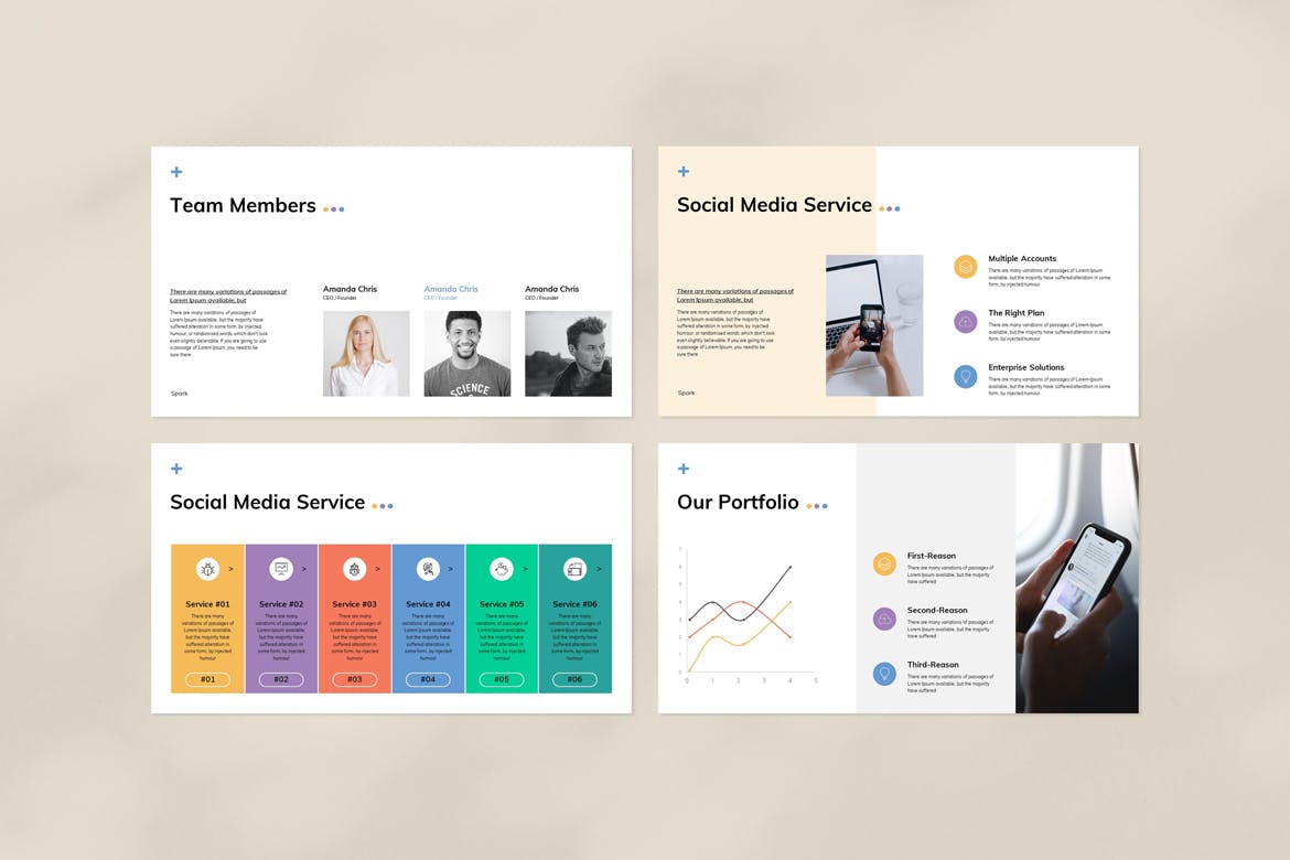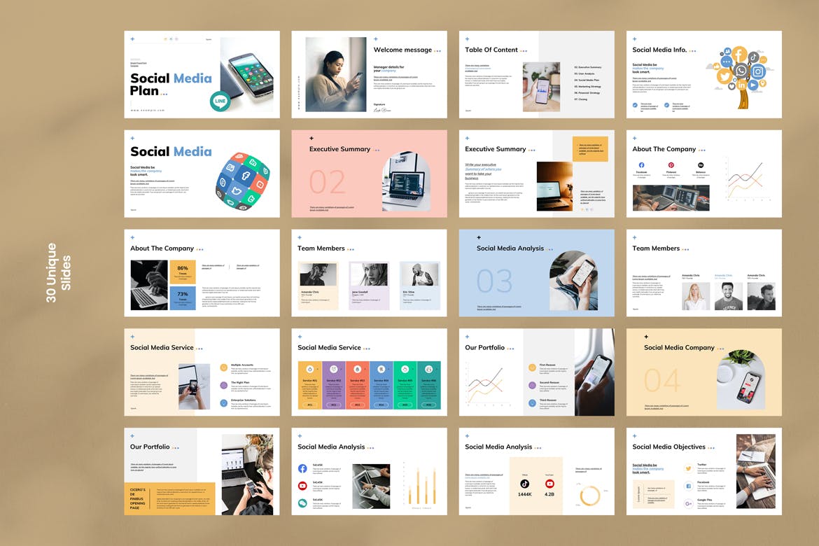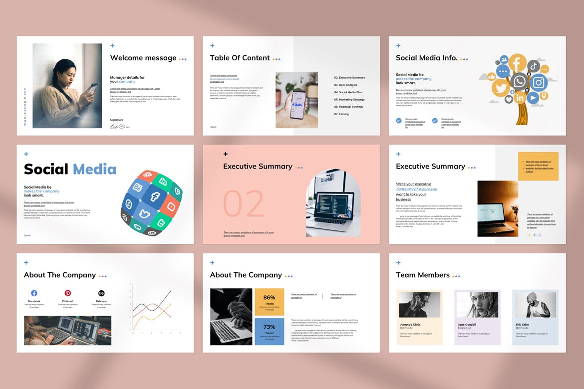 这套社交媒体演示模板允许您简单地添加徽标和图像并编辑您的品牌颜色和版式,然后就可以开始了。不要浪费您的时间,模板已经为您完成了所有艰苦的工作。